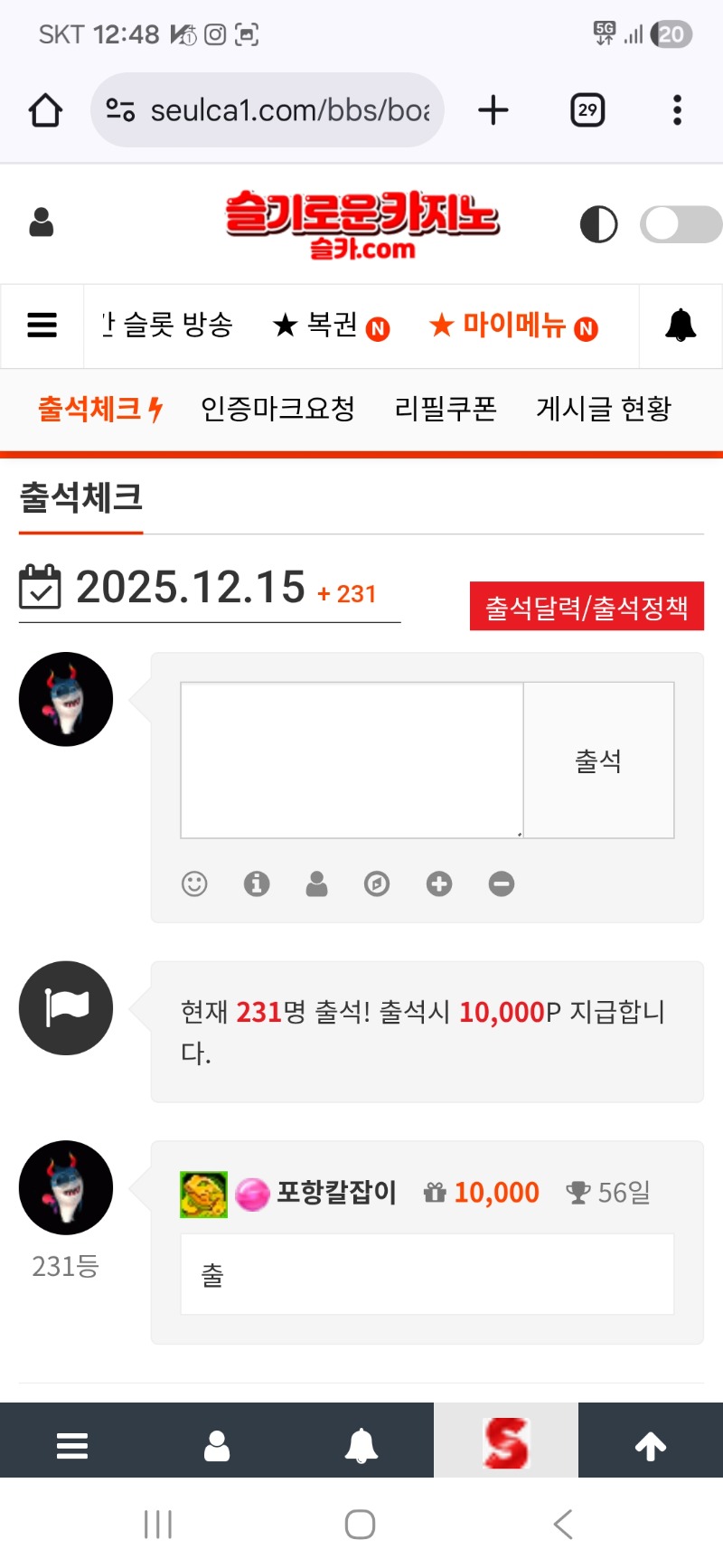 은행이 안되네 ㅠ 포항칼잡이 0 0 0 00:48:46 *기프티콘 바코드 노출 주의* <- 0 0 https://seulca1.com/bbs/board.php?bo_table=free&wr_id=3385935&page=3 Author 3 0 Lv.12 포항칼잡이 12 13,245,608 (4%) 포항칼잡이님 보유 포인트 : P 40,310 12.15 은행이 안되네 ㅠ +1 12.14 [비밀글] 주복 10등 +1 12.14 주복9.10이리주노 ㅋ +1 12.14 [비밀글] 포교 +5 12.14 주복9등