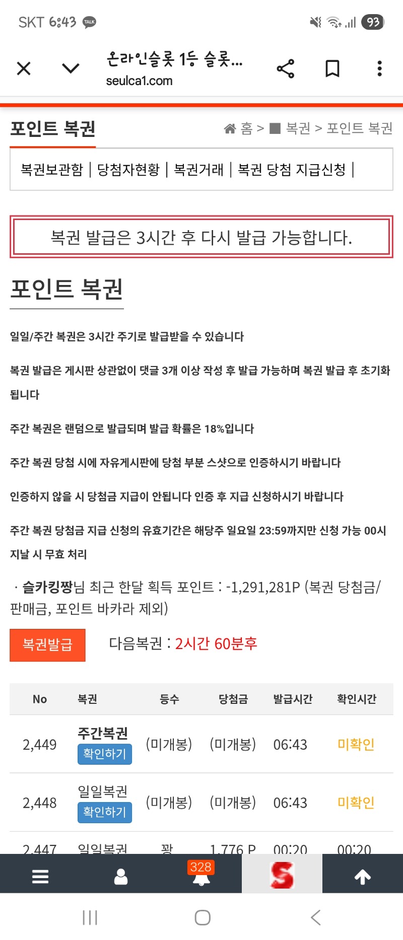 아침복권부터 쌍복이~~~ 슬카킹짱 0 0 0 06:44:32 *기프티콘 바코드 노출 주의* <- 0 0 https://seulca1.com/bbs/board.php?bo_table=free&wr_id=3386216&page=3 Author 1 1 Lv.11 슬카킹짱 11 12,742,943 (91%) 슬카킹짱님 보유 포인트 : P 279,823 12.15 아침복권부터 쌍복이~~~ +1 12.14 [비밀글] 주복 10등 교환신청 +13 12.14 건담 285배 +10 12.14 모치몬 358배 12.14 문 돌발 가보잣~~~~