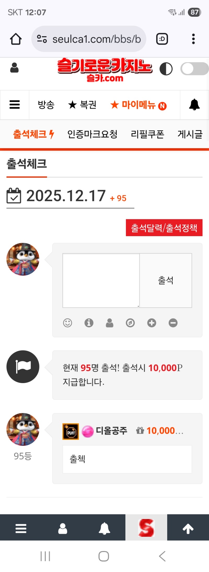 출첵합시다 디올공주 0 0 0 00:07:33 *기프티콘 바코드 노출 주의* <- 0 0 https://seulca1.com/bbs/board.php?bo_table=free&wr_id=3391887&page=3 Author 18 11 Lv.18 디올공주 18 147,619,321 (79%) 디올공주님 보유 포인트 : P 3,957,977 +5 12.17 레전드 164배*1000냥 +4 12.17 시안룰렛 ㅎ +4 12.17 느낌왔는데 아니네ᆢ +4 12.17 4대2승 +6 12.17 새벽카라~지금