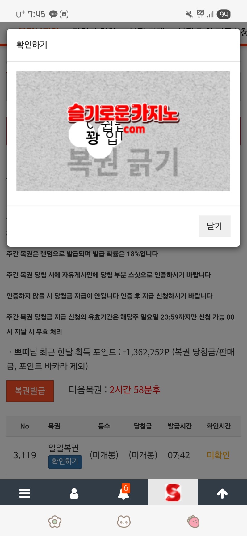 첫복권 꽝 쁘띠 3 1 0 07:45:42 *기프티콘 바코드 노출 주의* <- 1 0 https://seulca1.com/bbs/board.php?bo_table=free&wr_id=3392521&page=3 Author 15 4 Lv.17 쁘띠 17 71,742,748 (5%) 쁘띠님 보유 포인트 : P 673,636 +3 12.17 첫복권 꽝 +3 12.17 출첵 +2 12.16 저녁 복권 꽝 12.16 일복~꽝 12.16 꽝 ~꽝