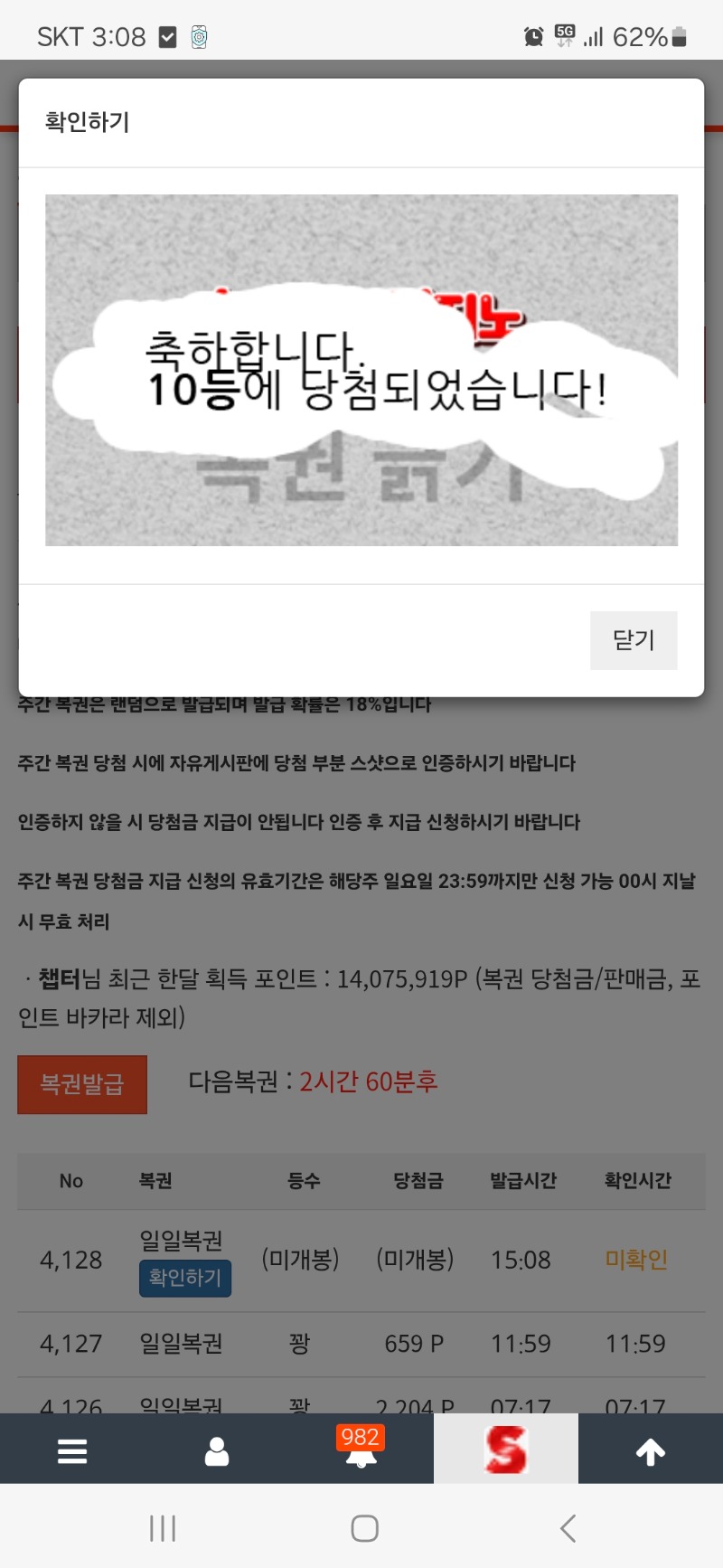 일복 10등 당첨 챕터 3 0 0 15:09:34 *기프티콘 바코드 노출 주의* <- 당첨인데 10등 까비 0 0 https://seulca1.com/bbs/board.php?bo_table=free&wr_id=3413144&page=3 Author 8 5 Lv.16 챕터 16 58,081,974 (40%) 챕터님 보유 포인트 : P 45,070 +3 12.24 일복 10등 당첨 12.24 맛점하세요 +1 12.24 모닝리필~ +4 12.24 굿모닝입니다 +1 12.24 게시글 숙제 완료했으니 취침하러갑니다