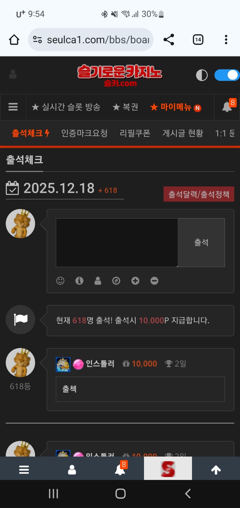 늦은출첵합니다 인스톨러 0 0 0 12.18 21:55 *기프티콘 바코드 노출 주의* <- 늦은출첵합니다 한줄알고 그냥지나칠뻔했네유 0 0 https://seulca1.com/bbs/board.php?bo_table=free&wr_id=3398096&page=6 Author 1 0 Lv.11 인스톨러 11 10,085,360 (2%) 인스톨러님 보유 포인트 : P 139,384 +14 12.18 룰렛 한방에털리네ㅡㅡ +13 12.18 룰렛 소액승리 2승 +13 12.18 프라그마틱 룰렛 소액승 +3 12.18 오늘첫복권 10등 12.18 늦은출첵합니다