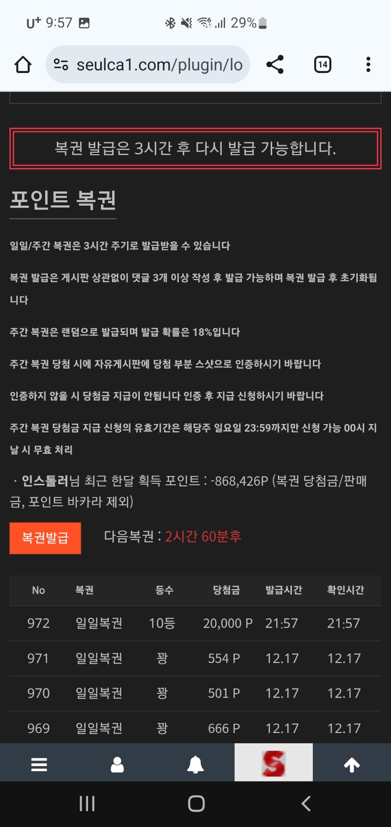 오늘첫복권 10등 인스톨러 3 0 0 12.18 21:58 *기프티콘 바코드 노출 주의* <- 일복 10등 했네유 1등주징ㅋㅋ 0 0 https://seulca1.com/bbs/board.php?bo_table=free&wr_id=3398100&page=6 Author 1 0 Lv.11 인스톨러 11 10,085,360 (2%) 인스톨러님 보유 포인트 : P 139,384 +14 12.18 룰렛 한방에털리네ㅡㅡ +13 12.18 룰렛 소액승리 2승 +13 12.18 프라그마틱 룰렛 소액승 +3 12.18 오늘첫복권 10등 12.18 늦은출첵합니다