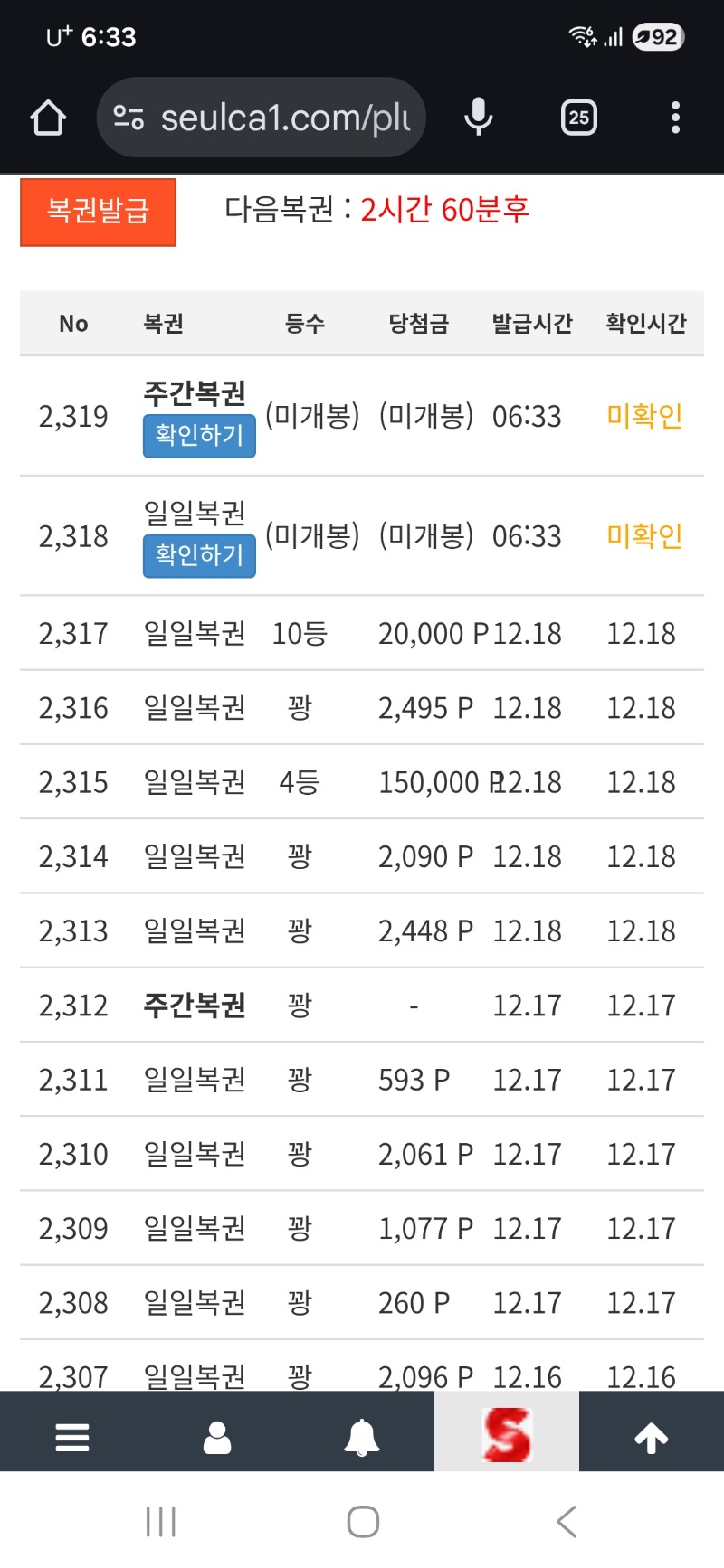 쌍복인데.또 둘다 꽝이요.ㅋㅋ 동희 6 1 0 10:10:40 *기프티콘 바코드 노출 주의* <- 1 0 https://seulca1.com/bbs/board.php?bo_table=free&wr_id=3399254&page=6 Author 4 1 Lv.15 동희 15 41,501,604 (57%) 동희님 보유 포인트 : P 4,162,537 +2 12.19 모두 맛점들 하세요 +6 12.19 쌍복인데.또 둘다 꽝이요.ㅋㅋ +8 12.18 주사위 천.바닥114배 +16 12.18 일복 4등 당첨이네요! +22 12.18 주사위 천.바닥150배