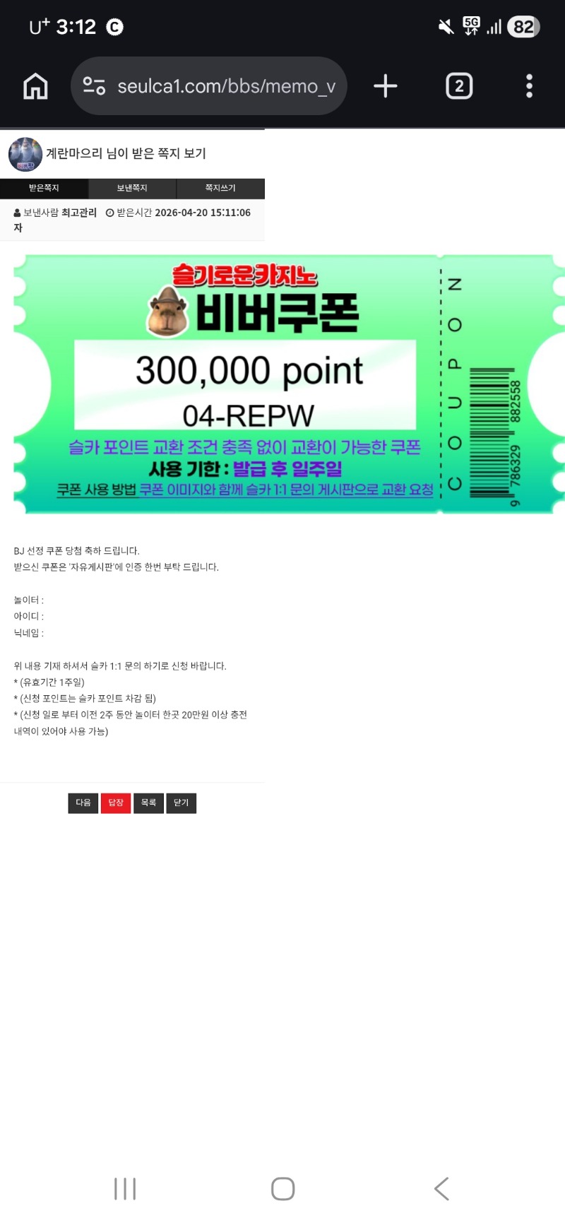 비버오빠 추겜수익 ㅅ ㅅ 계란마으리 14 0 0 15:55:39 *기프티콘 바코드 노출 주의* <- 역시 블던 짱이야 ~_~ 오늘도 수익 마감 ㅅ ㅅ ㅅ 2부도 수익마감하자 0 0 https://seulca1.com/bbs/board.php?bo_table=free&wr_id=3815009&page=7 Author 12 6 Lv.15 계란마으리 15 38,762,429 (43%) 계란마으리님 보유 포인트 : P 20,034,688 +3 04.20 비버오빠 추겜수익 슈우웃~ +4 04.20 물뎅이 수익 슬포 ! +14 04.20 비버오빠 추겜수익 ㅅ ㅅ +28 04.20 싸펍 9천바리 바닥100배 04.20 도라에몽 가위 낼수있는거 아는 사람
