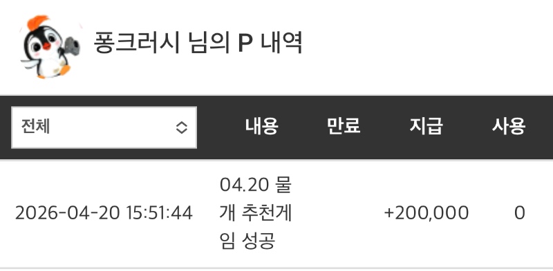 물개오빠추겜당첨~ 퐁크러시 6 0 0 16:09:54 *기프티콘 바코드 노출 주의* <- 수익실패ㅠ 0 0 https://seulca1.com/bbs/board.php?bo_table=free&wr_id=3815090&page=7 Author 2 0 Lv.13 퐁크러시 13 19,843,628 (36%) 퐁크러시님 보유 포인트 : P 1,265,337 +10 04.20 물개오빠수익댓글포!!! +6 04.20 물개오빠추겜당첨~ +21 04.20 맛점하세용~ ♡오늘은 맥날^3^ +6 04.20 결국밤샛다..휴..스포츠ㅠㅜ +8 04.19 펭오빠추겜성공♡