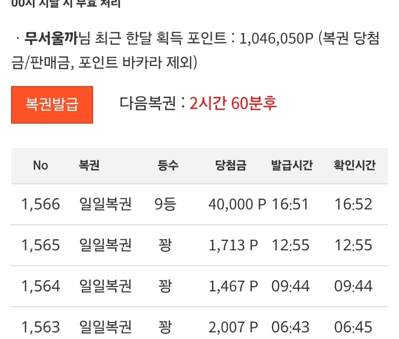 100꽝도전기 0/100 ㅠ ㅠ 무서울까 4 0 0 16:53:50 *기프티콘 바코드 노출 주의* <- 도전후 더 당첨잘되는거같은데... 기분탓이겠죠??? 0 0 https://seulca1.com/bbs/board.php?bo_table=free&wr_id=3815267&page=7 Author 4 2 Lv.12 무서울까 12 14,190,765 (23%) 무서울까님 보유 포인트 : P 1,473,151 +4 04.20 100꽝도전기 0/100 ㅠ ㅠ +1 04.20 호떡이네 사랑~~ +2 04.20 백꽝도전기 3/100 +15 04.20 버킹메 111배 +13 04.20 버킹메 174배