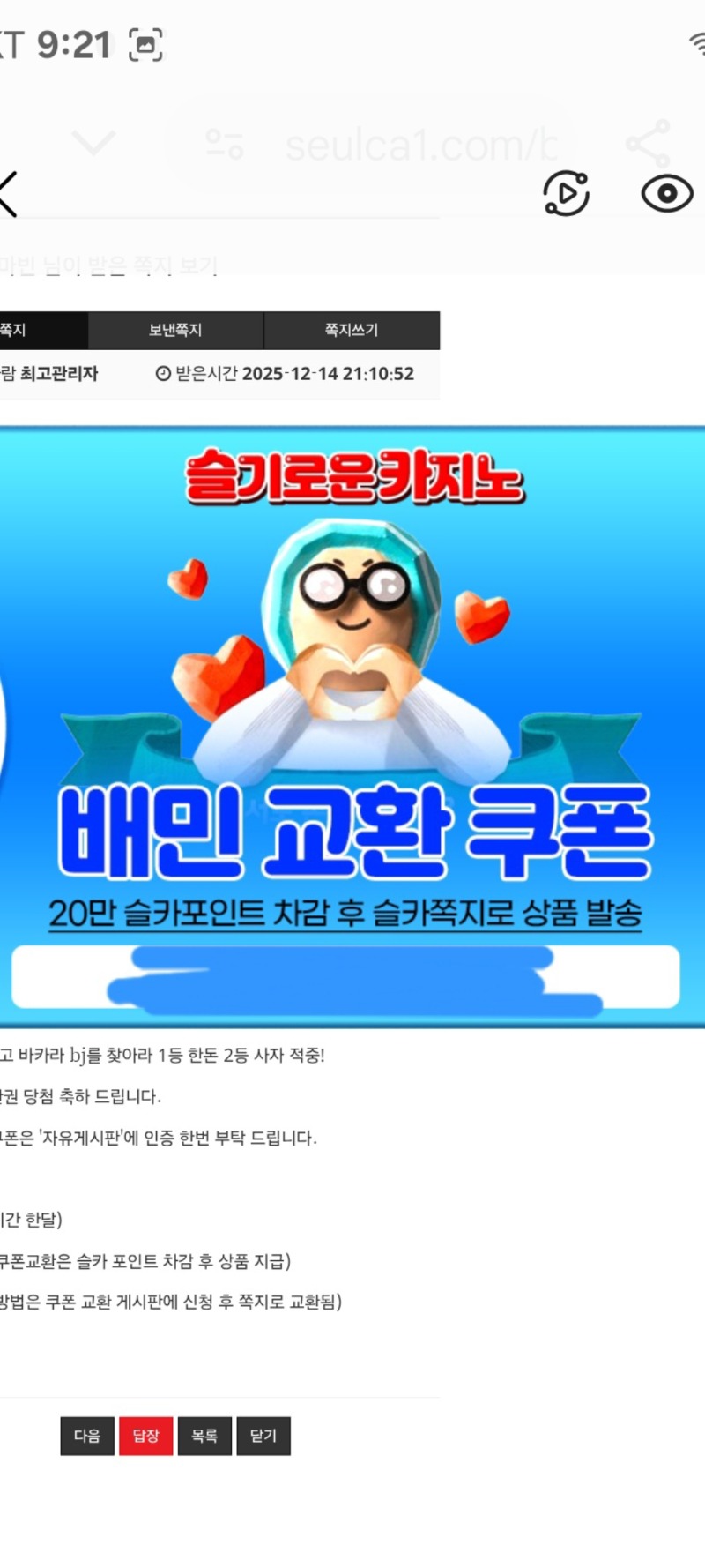 최바비 1등 2등 적중 배민쿱 ㅅㅅ 마빈 8 0 0 12.14 21:23 *기프티콘 바코드 노출 주의* <- 0 0 https://seulca1.com/bbs/board.php?bo_table=free&wr_id=3385342&page=8 Author 0 1 Lv.9 마빈 9 7,714,765 (92%) 마빈님 보유 포인트 : P 760,164 12.16 출첵이요 +10 12.16 마담 1979 +4 12.16 로켓 624 +7 12.16 건담 492 +4 12.16 토라매 290