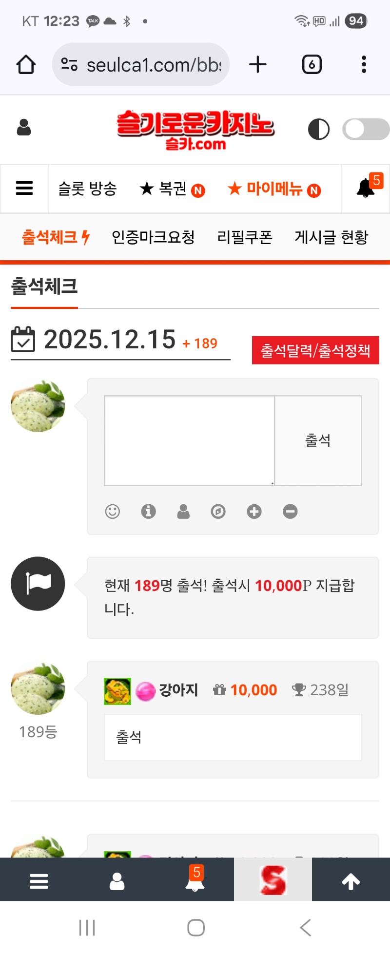 출책 합시당 강아지 0 0 0 00:31:02 *기프티콘 바코드 노출 주의* <- 0 0 https://seulca1.com/bbs/board.php?bo_table=free&wr_id=3385906&page=8 Author 0 0 Lv.12 강아지 12 13,075,285 (1%) 강아지님 보유 포인트 : P 1,979,971 12.15 출책 합시당 12.13 즐거운 주말 보내세요 ♡♡♡ 12.13 주복.일복.두개다 사시는분 당첨 기원합니다 ^^ 12.13 오늘도 출근성공 +1 12.12 사자 멀린 수익 이벤트 슬포당첨♡♡♡