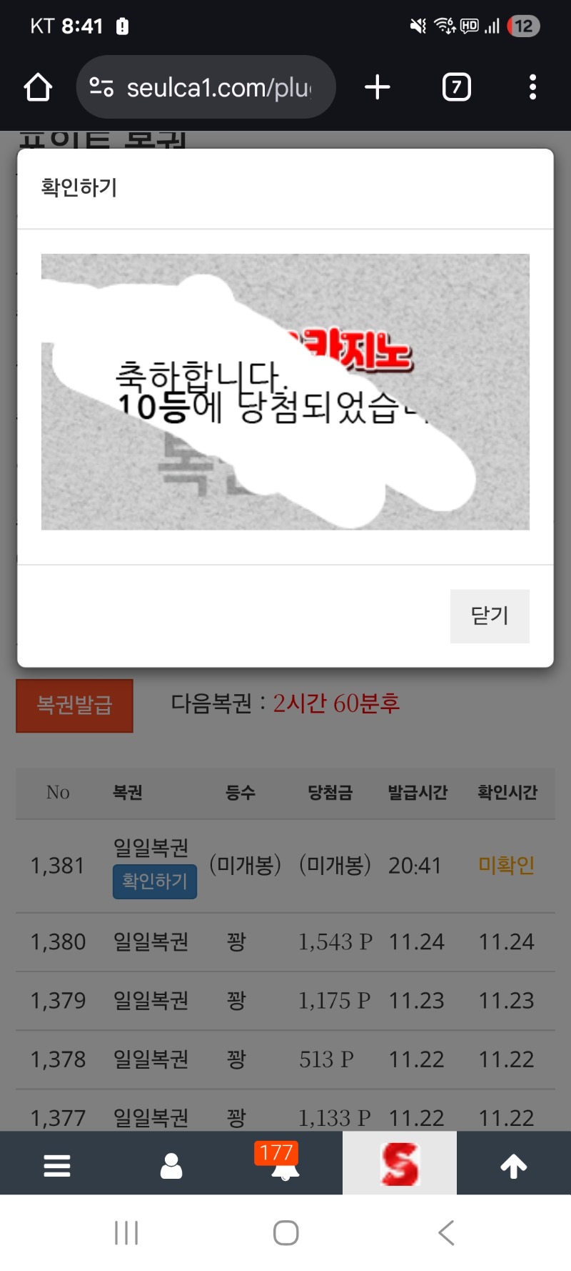 좋았어 일복10등 바꿔볼까 1 1 0 11.25 20:42 *기프티콘 바코드 노출 주의* <- 1 0 https://seulca1.com/bbs/board.php?bo_table=free&wr_id=3324378 Author 0 0 Lv.10 바꿔볼까 10 9,011,749 (50%) 바꿔볼까님 보유 포인트 : P 23,084 +3 12.13 간만에 일복기 당첨 5등 +2 11.28 일복 10등 어서오고 +4 11.27 일복3등 감사 +1 11.25 좋았어 일복10등 +35 11.21 에이스 333배