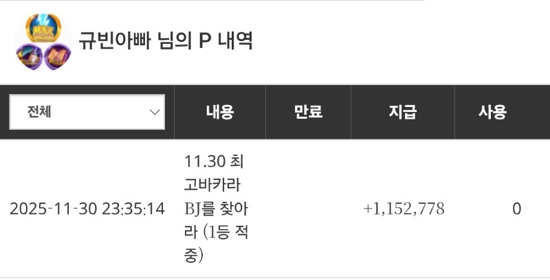 최바비 토끼비버 적중했네요^^ 규빈아빠 3 0 0 11.30 23:40 *기프티콘 바코드 노출 주의* <- 교환권 포인트 고맙습니다!! 0 0 https://seulca1.com/bbs/board.php?bo_table=free&wr_id=3342249 Author 0 0 Lv.10 규빈아빠 10 8,715,813 (35%) 규빈아빠님 보유 포인트 : P 20,352,355 +1 12.03 [비밀글] 교환신청합니다! +3 11.30 최바비 토끼비버 적중했네요^^ +26 11.30 정근신청합니다.