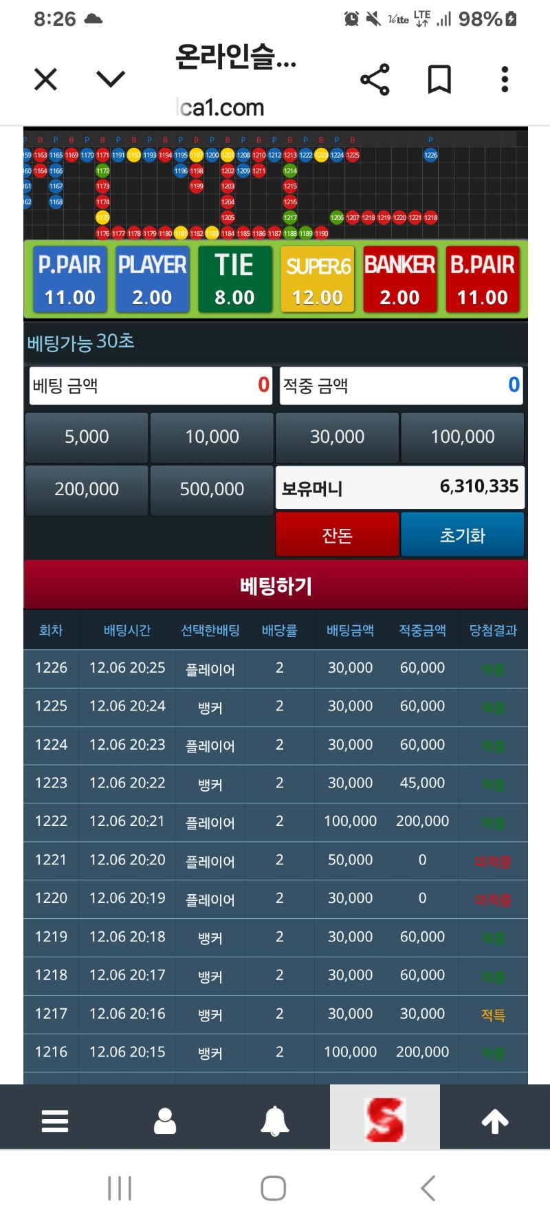 슬카라5연승!!!! 카라 13 1 0 2025.12.06 20:27 *기프티콘 바코드 노출 주의* <- 이게되네 ㅎ 1 0 https://seulca1.com/bbs/board.php?bo_table=free&wr_id=3362502 Author 13 3 Lv.18 카라 18 111,872,360 (19%) 카라님 보유 포인트 : P 3,698,741 +1 03.03 아침복권~~ +2 03.03 스피드카라 9:7 내츄럴승 +2 03.03 스피드카라 8:3 내츄럴승 +3 03.03 스피드카라 7:3 승 +4 03.03 스피드카라 7:7 무