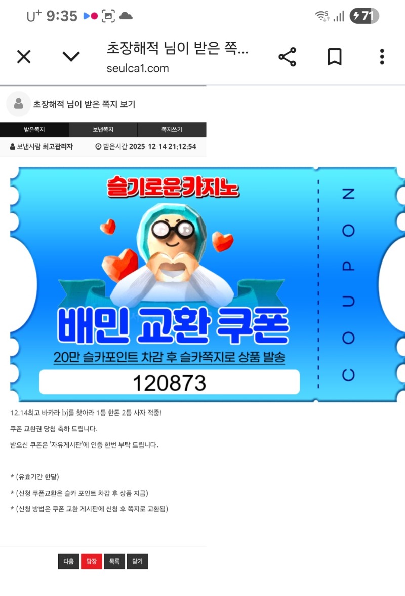 최바비 1,2 적중 배민교환쿠폰 왔네요