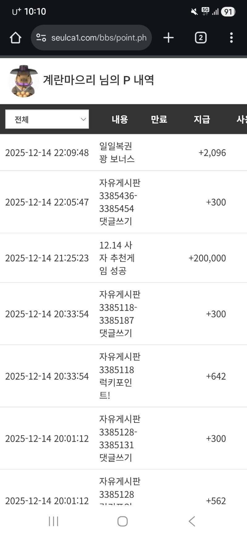 사자 추겜 포 슈우웃~ 계란마으리 6 0 0 12.14 22:11 *기프티콘 바코드 노출 주의* <- 보고픈거 추천하래서 수익못보믄궁시렁 궁시렁 딱콩을 확씨ㅋㅋㅋㅋㅋ 0 0 https://seulca1.com/bbs/board.php?bo_table=free&wr_id=3385461 Author 13 5 Lv.15 계란마으리 15 31,047,472 (5%) 계란마으리님 보유 포인트 : P 9,770,813 +6 12.14 사자 추겜 포 슈우웃~ +6 12.14 토끼 추겜 수익 성공 ㅅ ㅅ +6 12.13 비버싼타 '^' +1 12.13 랑오빠 방송 음악퀴즈ㅋㅋㅋ +1 12.13 [비밀글] 포교
