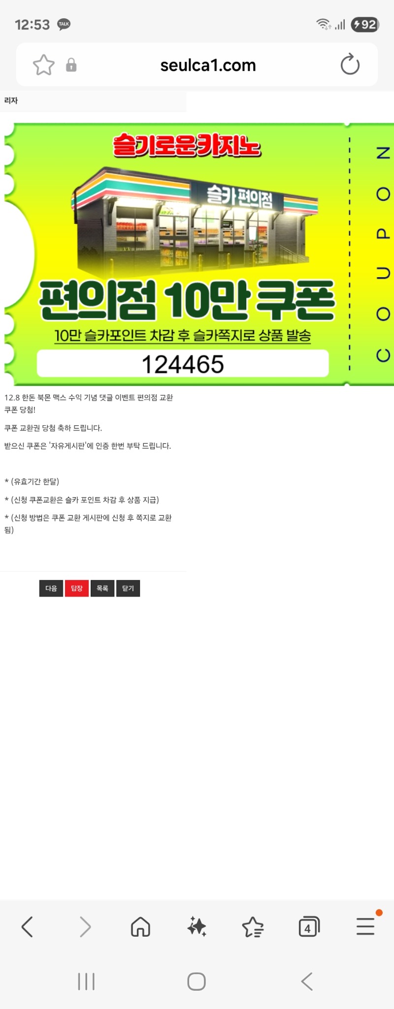편의점교환쿱 제니22 1 0 0 12.14 23:30 *기프티콘 바코드 노출 주의* <- 감사합니다. 이제 겨우 사용했네요 ㅎ 0 0 https://seulca1.com/bbs/board.php?bo_table=free&wr_id=3385711 Author 3 0 Lv.12 제니22 12 15,413,109 (48%) 제니22님 보유 포인트 : P 52,212 +12 12.14 뱀피 176배 +1 12.14 편의점교환쿱 +1 12.14 주말끝 +1 12.14 요번주도 +1 12.14 일요일