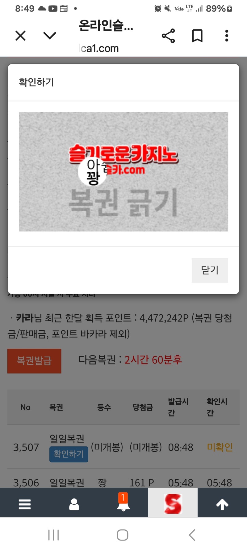 아침복권 긁었지만~~ 카라 3 1 0 08:50:04 *기프티콘 바코드 노출 주의* <- 꽝!!! 1 0 https://seulca1.com/bbs/board.php?bo_table=free&wr_id=3389517 Author 13 3 Lv.17 카라 17 89,729,896 (65%) 카라님 보유 포인트 : P 6,788,586 +2 12.16 시안룰렛!! +3 12.16 아침복권 긁었지만~~ 12.16 이아침에 최강야구시청!! +4 12.16 겜돌리기가 겁나네~~ 12.16 출출하네~~