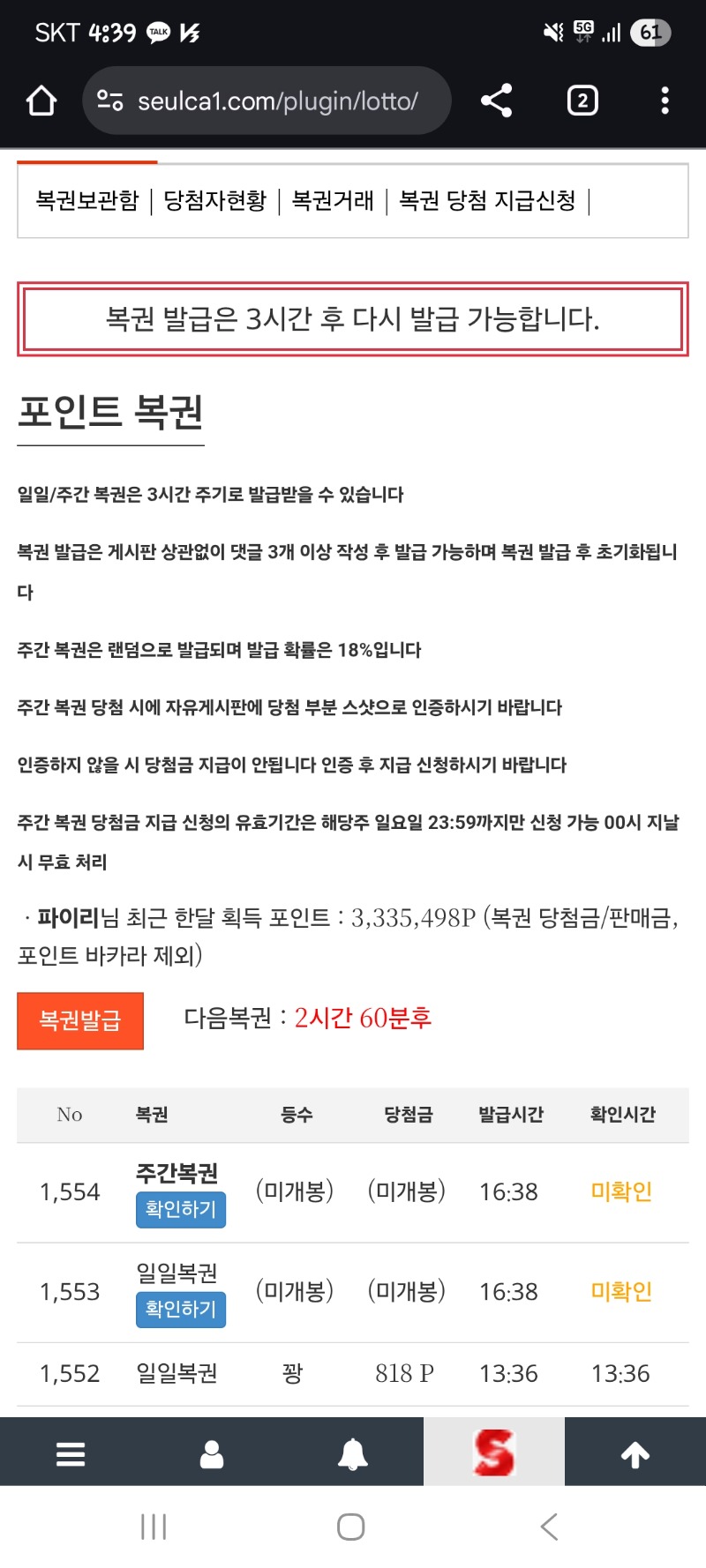 쌍복 왔네요 주복은 팔자 파이리 4 0 0 16:39:40 *기프티콘 바코드 노출 주의* <- 0 0 https://seulca1.com/bbs/board.php?bo_table=free&wr_id=3390422 Author 3 0 Lv.11 파이리 11 12,237,303 (74%) 파이리님 보유 포인트 : P 981 +9 12.16 쌍복이 또왔지만? 팔아야지 ㅋㅋ +4 12.16 쌍복 왔네요 주복은 팔자 +23 12.16 맛점들하세요~~ +4 12.16 복권은 꽈앙~ 12.16 리필 받을시간이네..