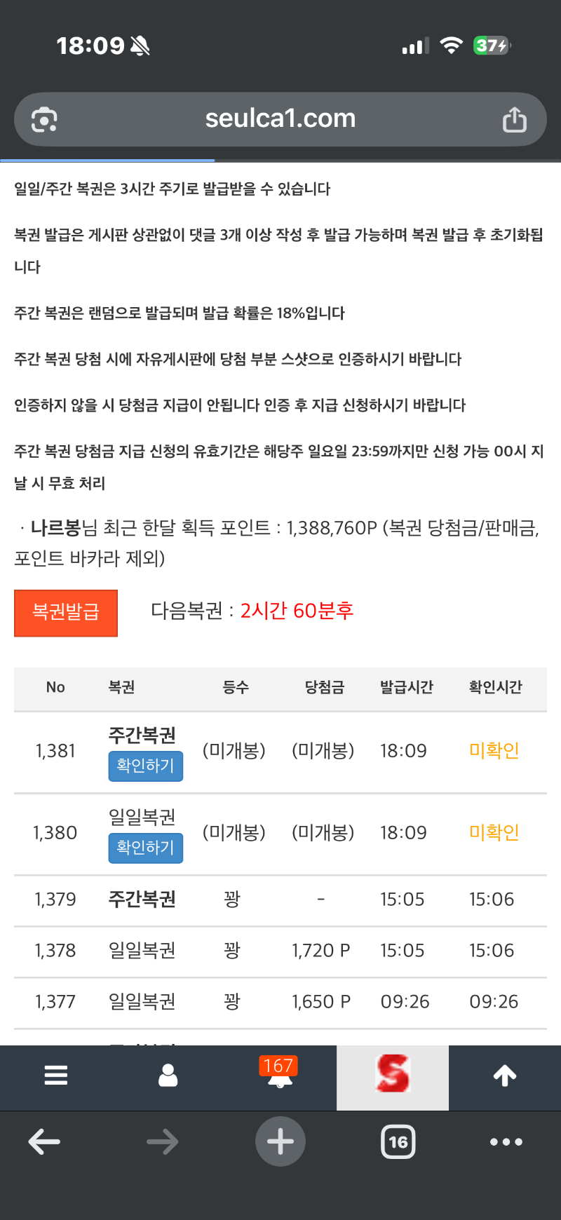 또 쌍복이 나르봉 0 0 0 18:10:58 *기프티콘 바코드 노출 주의* <- 과연 0 0 https://seulca1.com/bbs/board.php?bo_table=free&wr_id=3390888 Author 8 1 Lv.12 나르봉 12 13,857,265 (17%) 나르봉님 보유 포인트 : P 510,244 12.16 미니형난 12.16 또 쌍복이 +1 12.16 쌍복이~~~~~ +23 12.16 오늘 일당 끝~~~ 조기퇴근 합니다~~ +22 12.16 와~~ 플레이어 7 쫄렸지만 두번째 카드 5 7:9 빵카 네추럴 승