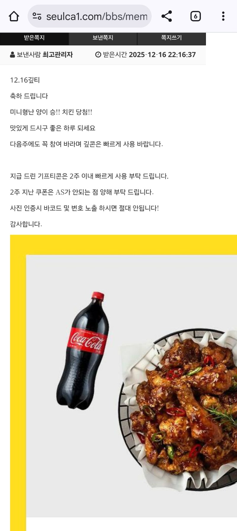 미형 양이승 치킨 에어팡 1 0 0 12.16 23:38 *기프티콘 바코드 노출 주의* <- 감사합니다~~~ㅎㅎ 0 0 https://seulca1.com/bbs/board.php?bo_table=free&wr_id=3391827 Author 4 4 Lv.13 에어팡 13 19,513,972 (30%) 에어팡님 보유 포인트 : P 2,048,775 +3 12.17 판다2 205배 +1 12.17 출석해요 +1 12.16 미형 양이승 치킨 +1 12.16 오랜만에 쌍복 12.16 미형 수고했어요