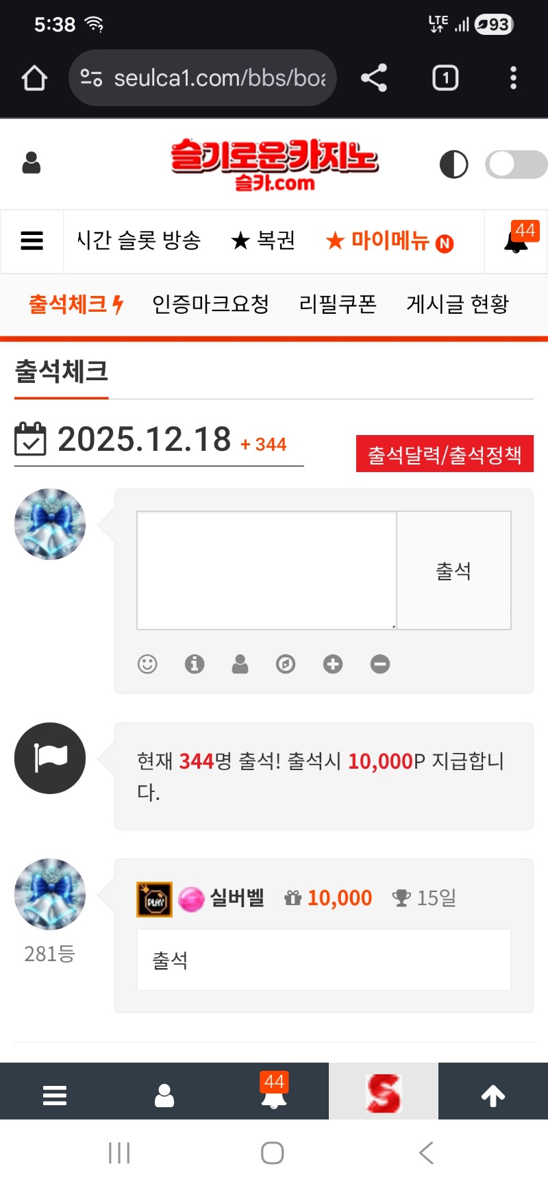 출석하고 ~~ 실버벨 1 0 0 05:39:19 *기프티콘 바코드 노출 주의* <- 0 0 https://seulca1.com/bbs/board.php?bo_table=free&wr_id=3395676 Author 10 7 Lv.18 실버벨 18 130,759,514 (51%) 실버벨님 보유 포인트 : P 356,118 +10 12.18 3승 했으면 도망가야지~~~ +9 12.18 시카라 2승하공~~~ +9 12.18 시카라 1승~~ +1 12.18 리필가짱 ~~~ +1 12.18 출석하고 ~~