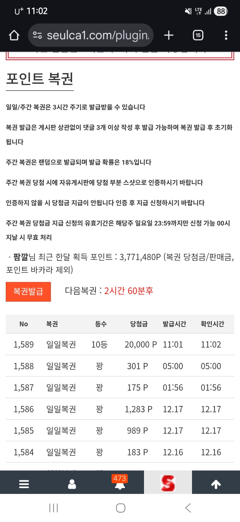 일복 10등 ㅎㅎ 팜깔 7 0 0 11:03:13 *기프티콘 바코드 노출 주의* <- ㅎㅎ 1보이길래 설렛네요 0 0 https://seulca1.com/bbs/board.php?bo_table=free&wr_id=3396296 Author 3 0 Lv.11 팜깔 11 12,462,974 (82%) 팜깔님 보유 포인트 : P 540 +2 12.18 깡치기 왜이리 힘든가요 +9 12.18 일복 3등 ㅎㅎㅎㅎ +7 12.18 일복 10등 ㅎㅎ +3 12.18 굿모닝입니다 +2 12.18 굿밤되세요
