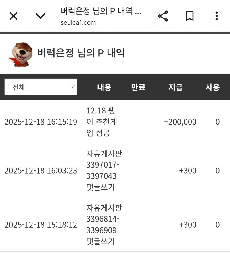 펭이 추겜 당춈 버럭은정 7 1 0 16:38:39 *기프티콘 바코드 노출 주의* <- 1 0 https://seulca1.com/bbs/board.php?bo_table=free&wr_id=3397172 Author 1 0 Lv.9 버럭은정 9 4,748,127 (18%) 버럭은정님 보유 포인트 : P 27,082,770 +7 12.18 펭이 추겜 당춈 +12 12.18 최바비 1.2등 나이스~~ +6 12.16 펭이추겜 당춈 +9 12.15 펭이추겜 수익쿱 +4 12.15 펭이 추겜 당춈