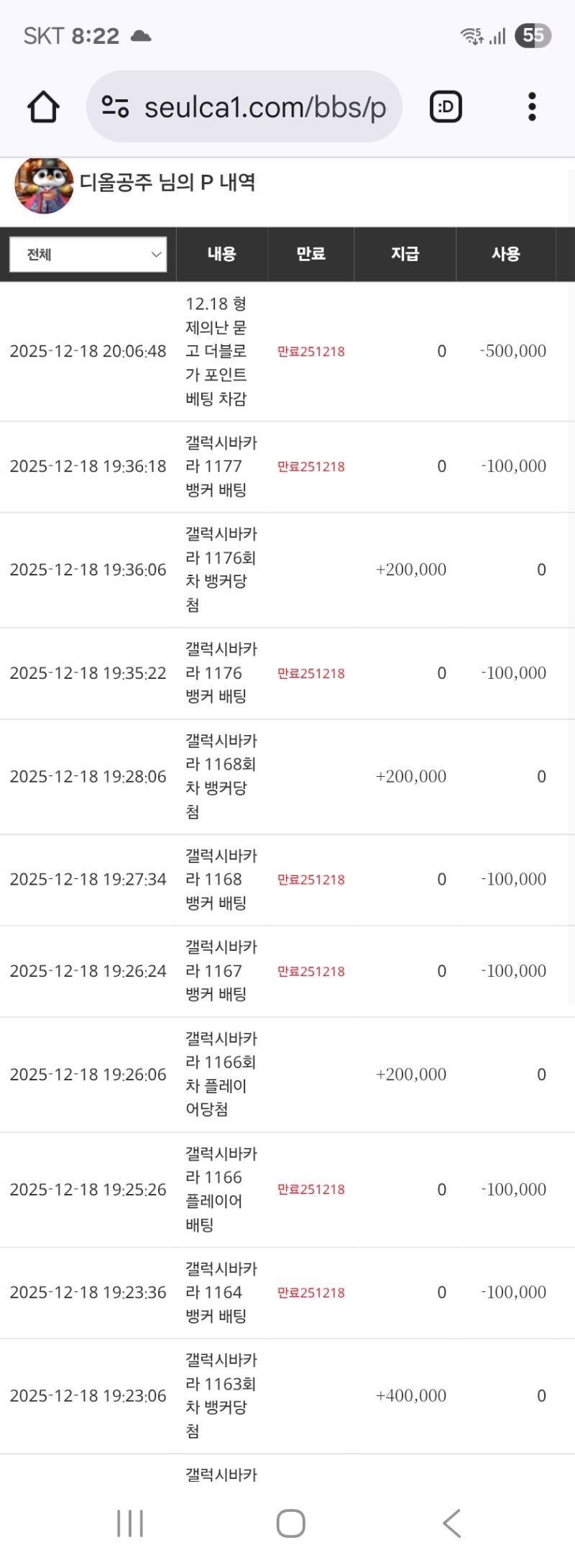 형난포인트 차감 디올공주 0 0 0 20:23:31 *기프티콘 바코드 노출 주의* <- 0 0 https://seulca1.com/bbs/board.php?bo_table=free&wr_id=3397979 Author 18 11 Lv.18 디올공주 18 148,749,678 (81%) 디올공주님 보유 포인트 : P 4,045,742 +4 12.18 슈천 902배 +2 12.18 멀린 332배*800냥 12.18 형난포인트 차감 12.18 형난 이벤 읍나부다 +6 12.18 레부 돌발 갓짱