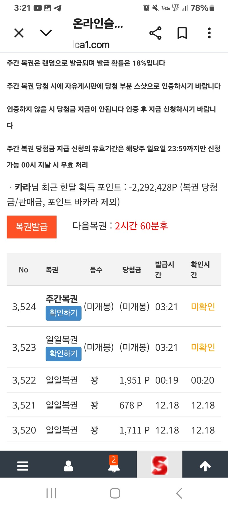 쌍복등장!! 카라 2 0 0 03:23:09 *기프티콘 바코드 노출 주의* <- 결과는 꽝꽝!!! 0 0 https://seulca1.com/bbs/board.php?bo_table=free&wr_id=3398799 Author 13 3 Lv.17 카라 17 90,539,434 (68%) 카라님 보유 포인트 : P 541,577 12.19 시안 룰렛!! +2 12.19 쌍복등장!! +18 12.19 레부100%결과 +6 12.19 일찌감치 포교신청!! +1 12.19 [비밀글] 포인트교환 합니다~