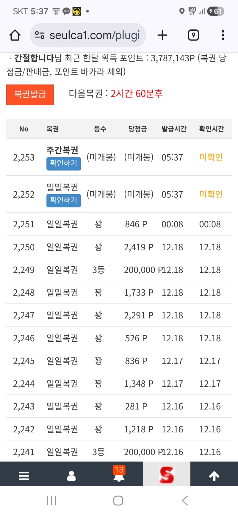 드뎌 쌍복출현 간절합니다 0 0 0 05:38:18 *기프티콘 바코드 노출 주의* <- 0 0 https://seulca1.com/bbs/board.php?bo_table=free&wr_id=3398886 Author 2 0 Lv.13 간절합니다 13 18,204,582 (4%) 간절합니다님 보유 포인트 : P 2,476 12.19 드뎌 쌍복출현 +6 12.18 일복 3등 ㅅㅅㅅ 하지만 슬카라 오링용 +3 12.18 간만에 연승인데 욕심이란 +2 12.18 가족방배민 드뎌 교환하네요 +1 12.18 [비밀글] 배민 쿠폰 교환요