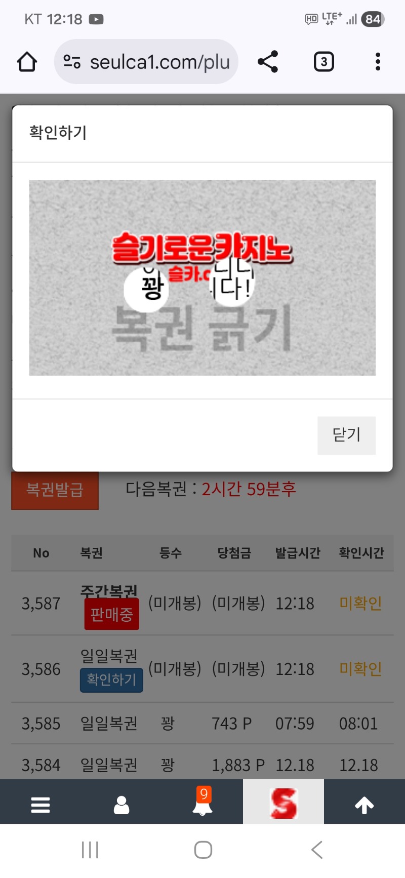 점심복권은..쌍복이 지킴이 1 0 0 12:27:53 *기프티콘 바코드 노출 주의* <- 주복은 팔고 일복은 꽝~~ 0 0 https://seulca1.com/bbs/board.php?bo_table=free&wr_id=3399489 Author 9 4 Lv.18 지킴이 18 130,357,296 (50%) 지킴이님 보유 포인트 : P 125,772 +1 12.19 점심복권은..쌍복이 +1 12.19 맛점 하세요 +2 12.19 출근길 모닝커피 12.19 출첵 인증 12.19 뎅이후 리필여