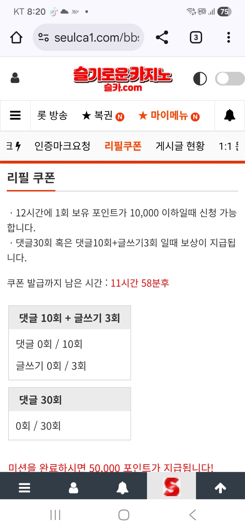 이모님 리필 ~~ 지킴이 1 0 0 20:20:59 *기프티콘 바코드 노출 주의* <- 노가다 시작~~ 0 0 https://seulca1.com/bbs/board.php?bo_table=free&wr_id=3400803 Author 9 4 Lv.18 지킴이 18 130,454,293 (50%) 지킴이님 보유 포인트 : P 22,126 +1 12.19 저녁복권도..꽝 +1 12.19 이모님 리필 ~~ +4 12.19 맛저 하세요 +4 12.19 졸라 모은거 또 갔다주네~~ +8 12.19 오만포 주시고~~깡치기 갓짱