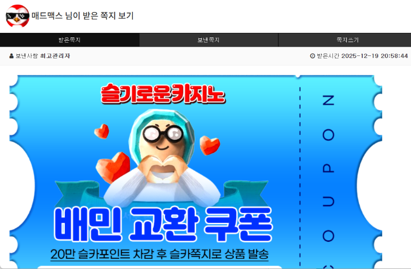 양아부지 추천게임 당춈! 매드맥스 2 0 0 22:05:13 *기프티콘 바코드 노출 주의* <- 폼페이 시드멘징 나이스! 양아부지 고맙습니데이~~ 0 0 https://seulca1.com/bbs/board.php?bo_table=free&wr_id=3401028 Author 5 2 Lv.13 매드맥스 13 20,199,432 (43%) 매드맥스님 보유 포인트 : P 7,780,138 +2 12.19 양아부지 추천게임 당춈! +2 12.18 랑이두 한입하쟈♡♡ +2 12.18 슬카피쟈~♡♡ 물개도 한입!! 아~ +2 12.17 일복 5등 연타바리 나이슛 +4 12.17 물개추겜 당첨 슬포
