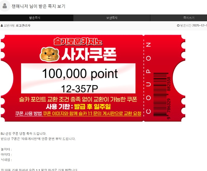 잘생긴 사자오빠가 용돈 줬어요 ^^ 잰매니저 8 4 0 12.19 23:10 마지막 한 장 남은 쿠폰을 ㅋㅋㅋ 4 0 https://seulca1.com/bbs/board.php?bo_table=free&wr_id=3401144 Author 134 56 Lv.18 잰매니저 18 111,241,040 (18%) 잰매니저님 보유 포인트 : P 10,307 +8 12.19 잘생긴 사자오빠가 용돈 줬어요 ^^ +2 12.19 사자오빠 스케줄표 +5 12.19 누가 "진짜" 물개일까요? 12.19 신청하세용!!!!!!!!!!!!!!!!! +3 12.19 ❤️ 랑이 시집 ❤️