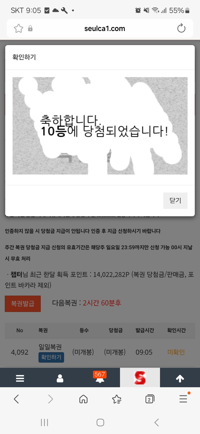 일복10등 당첨 챕터 4 0 0 09:26:05 *기프티콘 바코드 노출 주의* <- 10등 아쉽네요 ㅎㅎ감사합니다 0 0 https://seulca1.com/bbs/board.php?bo_table=free&wr_id=3401818 Author 8 5 Lv.16 챕터 16 57,146,935 (35%) 챕터님 보유 포인트 : P 913,323 +5 12.20 동태탕 한그릇~ +1 12.20 아점 먹을 준비합니당 +4 12.20 일복10등 당첨 12.20 굿모닝입니다 +1 12.20 토끼 추천게임 당첨