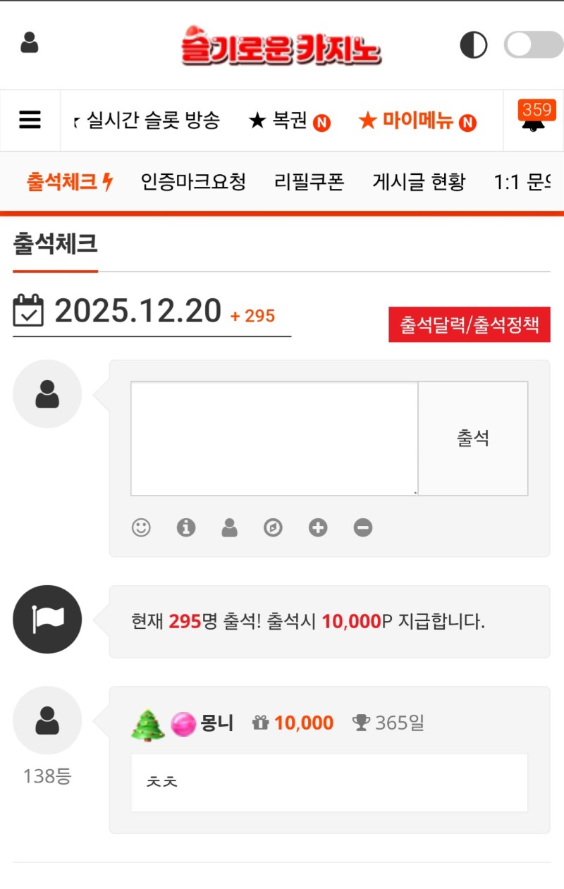 슬카 가입한지가 벌써 1년이네요 몽니 3 0 0 12:15:59 *기프티콘 바코드 노출 주의* <- 세월 참 빠릅니다 1년동안 얼마를 조졌는지 기억도안납니다 ㅎㅎ 0 0 https://seulca1.com/bbs/board.php?bo_table=free&wr_id=3402117 Author 1 0 Lv.10 몽니 10 9,945,362 (97%) 몽니님 보유 포인트 : P 37,227 +3 12.20 슬카 가입한지가 벌써 1년이네요 +3 12.19 시안돌발후기 +38 12.19 올림푸스 포춘 132 +42 12.16 아처 1000 338배 +3 12.15 문돌발후기