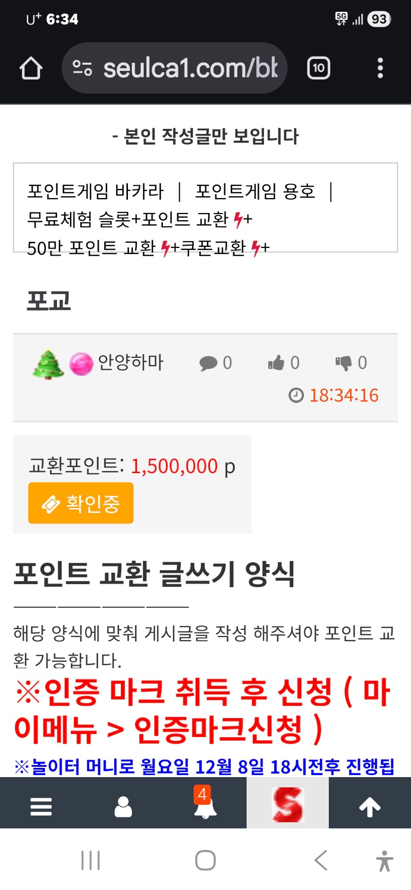 포교 신청 오링되기전에 이거라도ㅠ 안양하마 0 0 0 18:35:17 *기프티콘 바코드 노출 주의* <- 0 0 https://seulca1.com/bbs/board.php?bo_table=free&wr_id=3402802 Author 3 1 Lv.15 안양하마 15 48,190,658 (90%) 안양하마님 보유 포인트 : P 85,996 +1 12.20 아ㅡ오 심쿵이 걍 가네요 에휴 +2 12.20 빠른보상 감사합니다 12.20 식후 커담 12.20 심쿵이 출현 12.20 포교후 리필