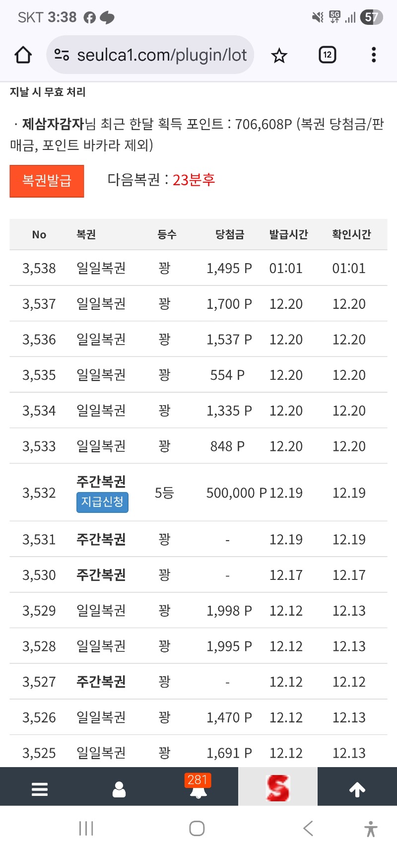 주복 5등 인증 제삼자감자 7 1 0 03:39:54 *기프티콘 바코드 노출 주의* <- 까먹구 안했었내 ㅋ 1 0 https://seulca1.com/bbs/board.php?bo_table=free&wr_id=3403834 Author 4 1 Lv.14 제삼자감자 14 25,863,511 (40%) 제삼자감자님 보유 포인트 : P 3,010,397 +2 12.21 워허.. 슬카라 300만 +7 12.21 주복 5등 인증 +11 12.21 제우스 301배 12.20 로또 1번~ 12.20 비가오내요. 라면 먹으까..