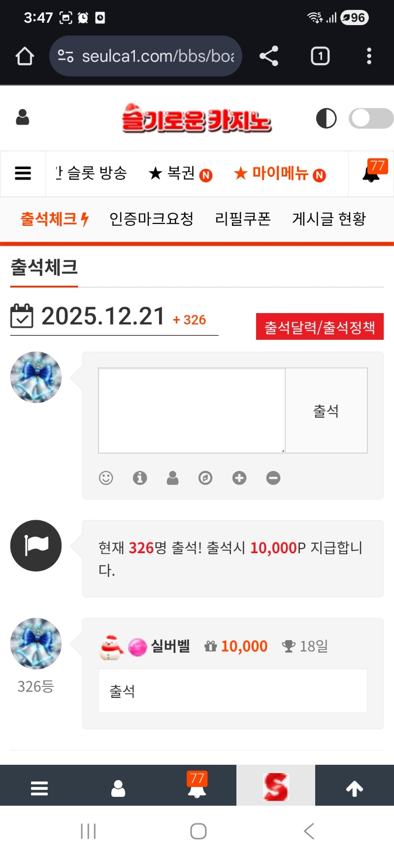 출석하고 ~~ 실버벨 0 0 0 03:47:55 *기프티콘 바코드 노출 주의* <- 0 0 https://seulca1.com/bbs/board.php?bo_table=free&wr_id=3403849 Author 10 7 Lv.18 실버벨 18 132,627,911 (54%) 실버벨님 보유 포인트 : P 66,466 +1 12.21 슬포다잃고 바카라한판..., +1 12.21 또 가따줬네ㅠ 12.21 출석하고 ~~ +5 12.21 3승 하고 튀어~~~ +5 12.21 2승 하공~~~