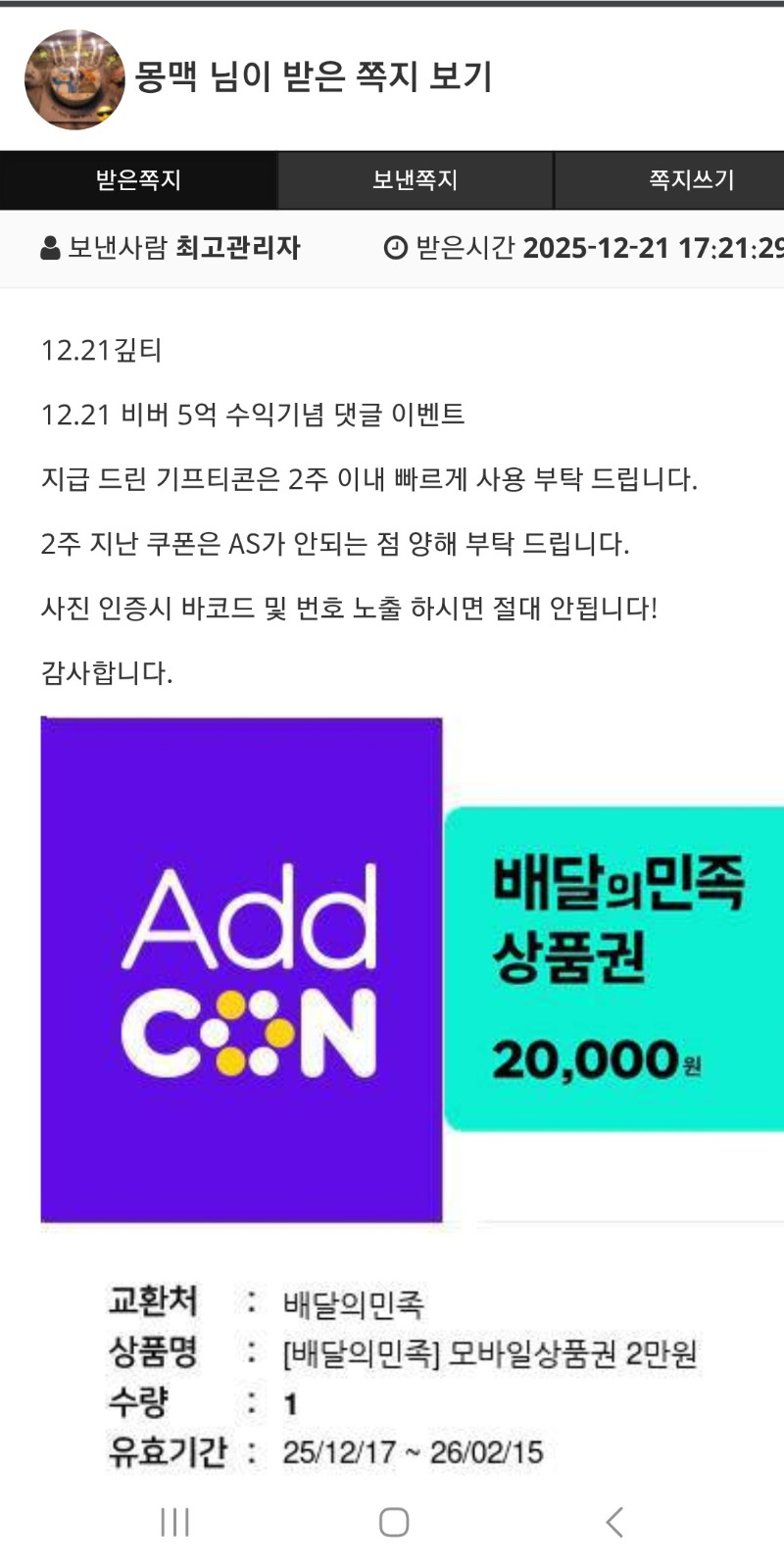 비벼비벼비스타 수익기념선착댓글~! 몽맥 2 0 0 17:32:25 *기프티콘 바코드 노출 주의* <- 꿀꺽 맛있는거 비버생각하며 먹으께! 0 0 https://seulca1.com/bbs/board.php?bo_table=free&wr_id=3405266 Author 49 22 Lv.19 몽맥 19 168,357,795 (0%) 몽맥님 보유 포인트 : P 194,697 +1 12.21 와타독 추겜당쵸미~ +5 12.21 현 최바비 순위공유~ 2명진행 +2 12.21 비벼비벼비스타 수익기념선착댓글~! +10 12.21 랑이는 꼭보아라..내가 이해력이 딸리는건가.. +24 12.21 25년마지막형난 선배vs후배 대결을 앞두고 25년 상대전적결과 공유드립니다.