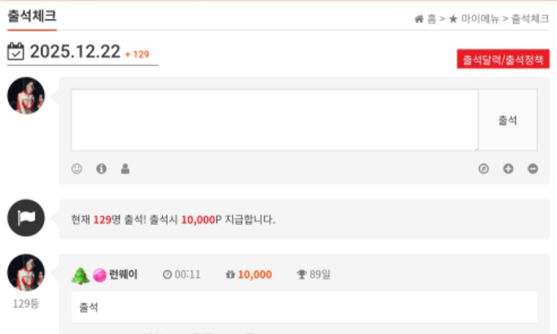 출석합시다 ~ 런웨이 1 1 0 00:12:58 *기프티콘 바코드 노출 주의* <- 출석 스타트~~^^ 1 0 https://seulca1.com/bbs/board.php?bo_table=free&wr_id=3406247 Author 0 0 Lv.11 런웨이 11 12,752,121 (91%) 런웨이님 보유 포인트 : P 33,466 +7 12.22 뱀피 1689 +5 12.22 뱀피 1894 +1 12.22 출석합시다 ~ 12.21 간만의 스포츠 도전! +3 12.21 최바비덕에 100만 포교라도 성공 ^^;