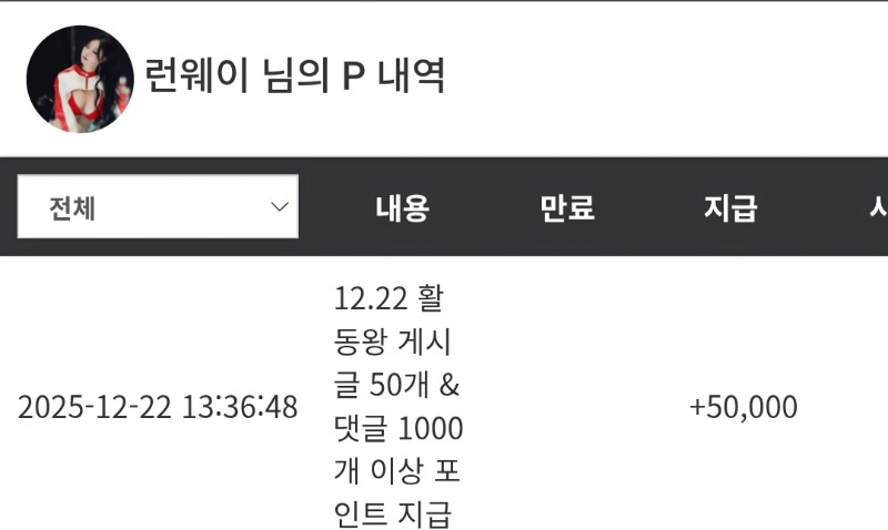 활동포 5만 ^^; 런웨이 3 0 0 14:36:21 *기프티콘 바코드 노출 주의* <- 이번주는 활동 좀 해야겠네..^^; 0 0 https://seulca1.com/bbs/board.php?bo_table=free&wr_id=3407599 Author 0 0 Lv.11 런웨이 11 12,764,976 (92%) 런웨이님 보유 포인트 : P 60,886 +3 12.22 활동포 5만 ^^; +1 12.22 굿모닝 ~~!! +15 12.22 뱀피 1689 +14 12.22 뱀피 1894 +1 12.22 출석합시다 ~