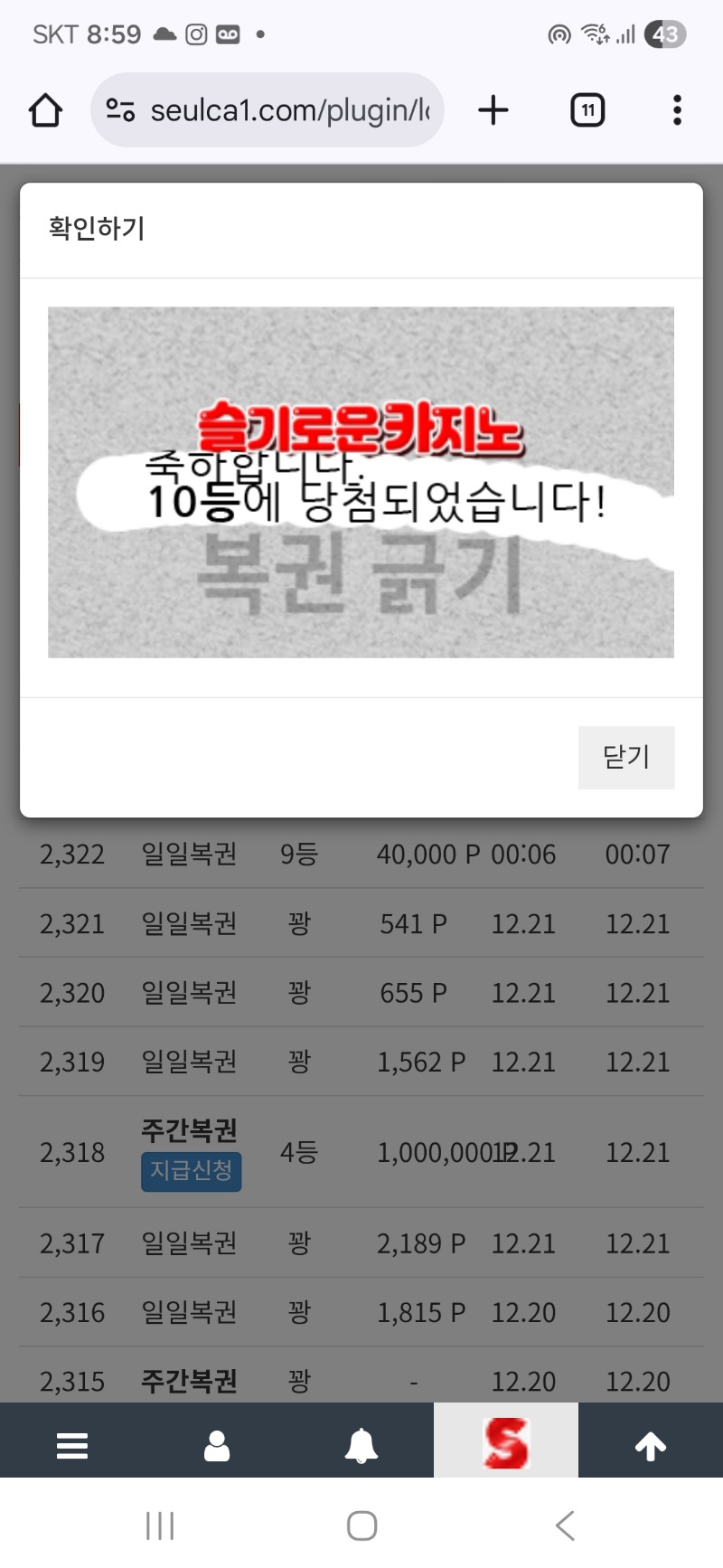 주복10등 ㅋㅋ 포항칼잡이 9 1 0 20:59:57 *기프티콘 바코드 노출 주의* <- 1 0 https://seulca1.com/bbs/board.php?bo_table=free&wr_id=3408771 Author 3 0 Lv.12 포항칼잡이 12 13,427,868 (8%) 포항칼잡이님 보유 포인트 : P 187,139 +10 12.22 닭308배 +9 12.22 주복10등 ㅋㅋ 12.22 출석 12.22 일복이9등 12.22 대충 한잔합시다