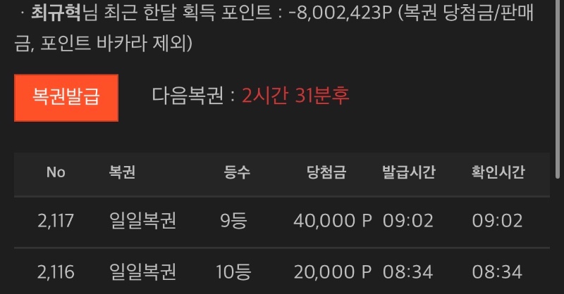 구매복 9등 당첨이네요 나이슈! 최규혁 8 0 0 09:04:20 마빈님 감사합니당 ㅎㅎ 나이스 0 0 https://seulca1.com/bbs/board.php?bo_table=free&wr_id=3409867 Author 8 4 Lv.11 최규혁 11 12,841,905 (94%) 최규혁님 보유 포인트 : P 17,251,719 +8 12.23 구매복 9등 당첨이네요 나이슈! +14 12.23 일복 10등 당첨 +6 12.23 시안 환전 성공! 12.23 시안룰렛 5천원당첨! +5 12.23 뱀피 425배