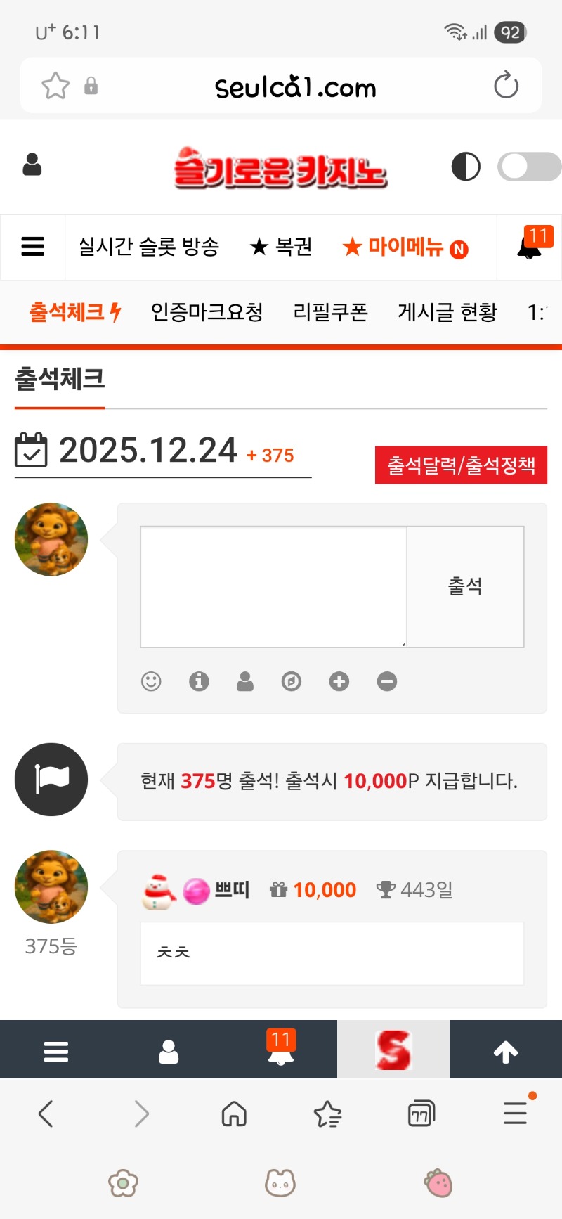 출첵 쁘띠 1 0 0 06:14:26 *기프티콘 바코드 노출 주의* <- 0 0 https://seulca1.com/bbs/board.php?bo_table=free&wr_id=3412170 Author 15 4 Lv.17 쁘띠 17 72,174,430 (7%) 쁘띠님 보유 포인트 : P 394,788 +1 12.24 출첵 12.24 첫복권 ~쌍복 12.23 사자야~~나이스~~♡♡ +2 12.23 아싸~~형난 치킨쿱~~~ 12.23 일복 꽝~