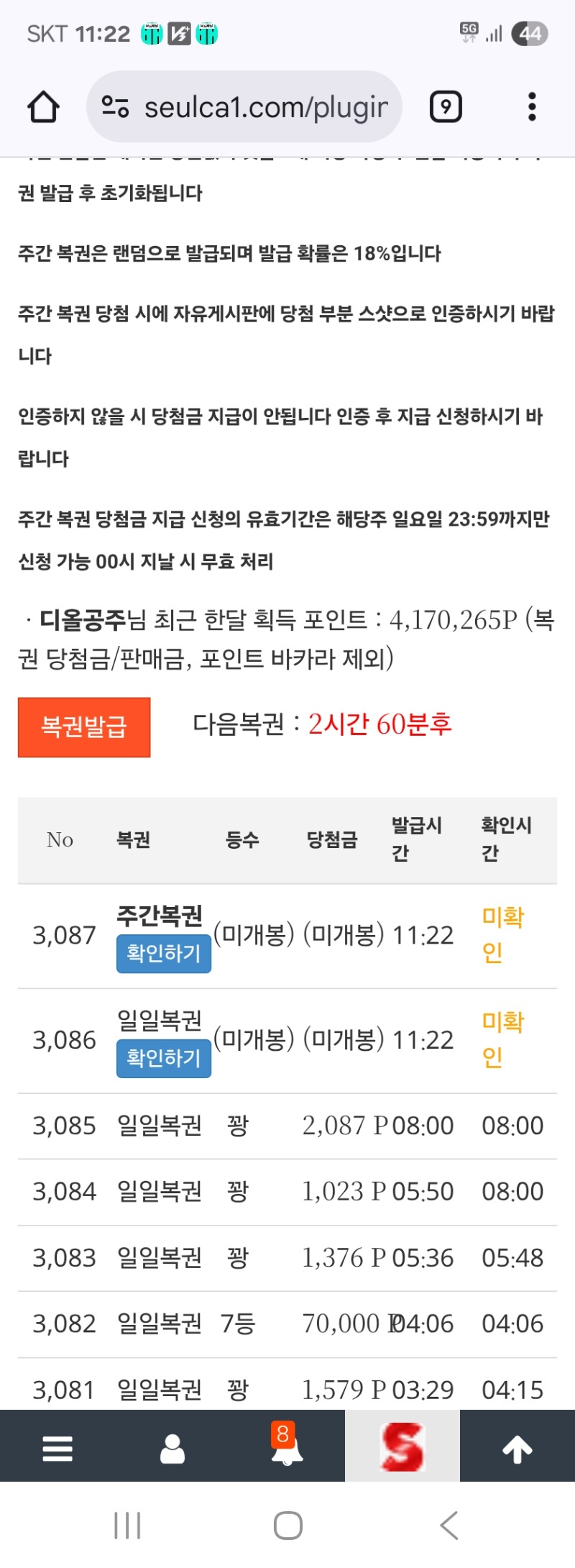 쌍복 ~~ 디올공주 6 0 0 11:23:20 *기프티콘 바코드 노출 주의* <- 0 0 https://seulca1.com/bbs/board.php?bo_table=free&wr_id=3412738 Author 18 11 Lv.18 디올공주 18 151,845,146 (86%) 디올공주님 보유 포인트 : P 4,606,266 +4 12.24 맛점하세요 ~ +6 12.24 쌍복 ~~ +14 12.24 마일리지 패 +12 12.24 2승은 안되네 +12 12.24 마일리지 1승