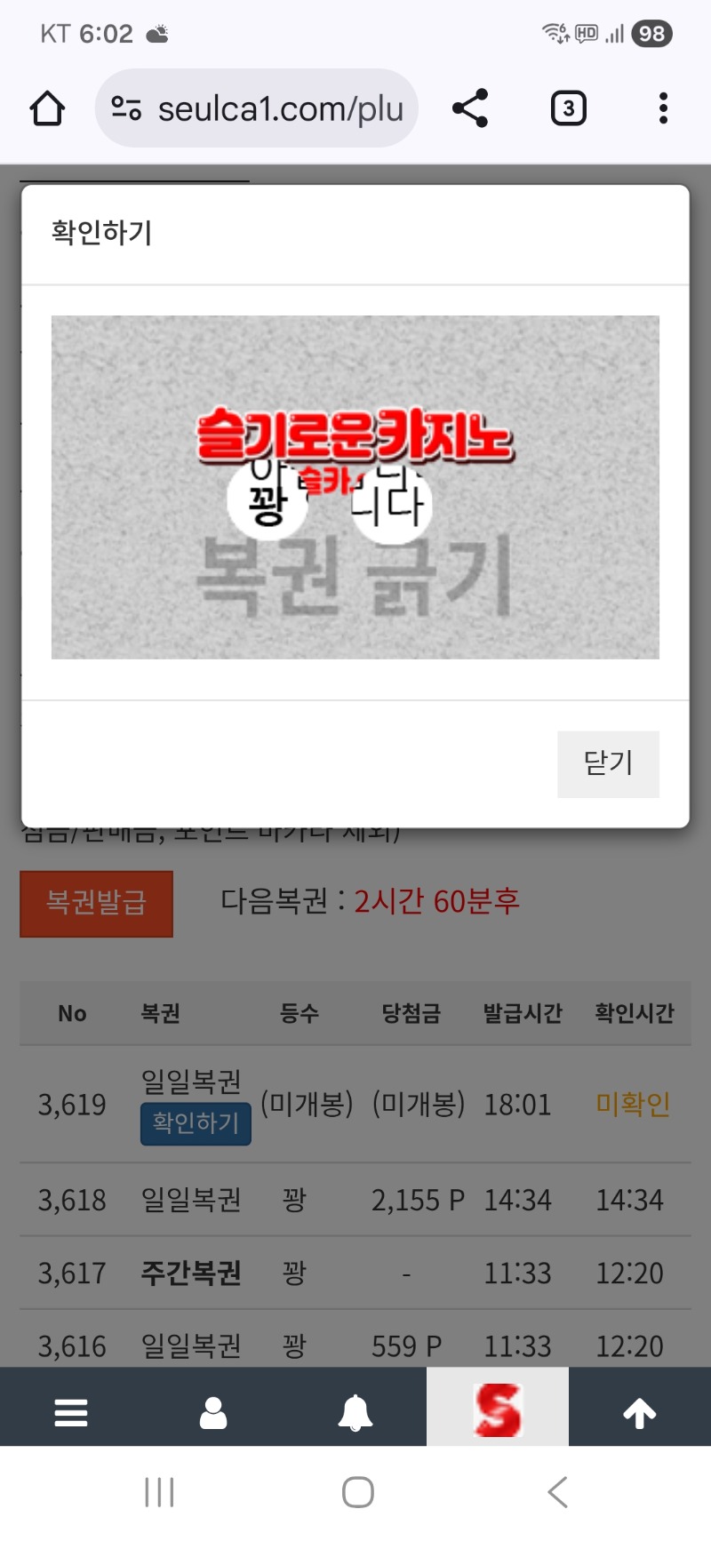 퇴근복권은..꽝데스 ~~ 지킴이 2 0 0 18:03:35 *기프티콘 바코드 노출 주의* <- 즐거운 시간 보내세요 ^^♡ 0 0 https://seulca1.com/bbs/board.php?bo_table=free&wr_id=3413503 Author 9 4 Lv.18 지킴이 18 131,787,819 (52%) 지킴이님 보유 포인트 : P 4,776,502 +2 12.24 퇴근복권은..꽝데스 ~~ +2 12.24 차가 드럽게 밀리네ㅠ 즐퇴합니다 12.24 오후복권은..조용히 흐르고~~ 12.24 쌍복 올꽝~~ 12.24 맛점 하세요