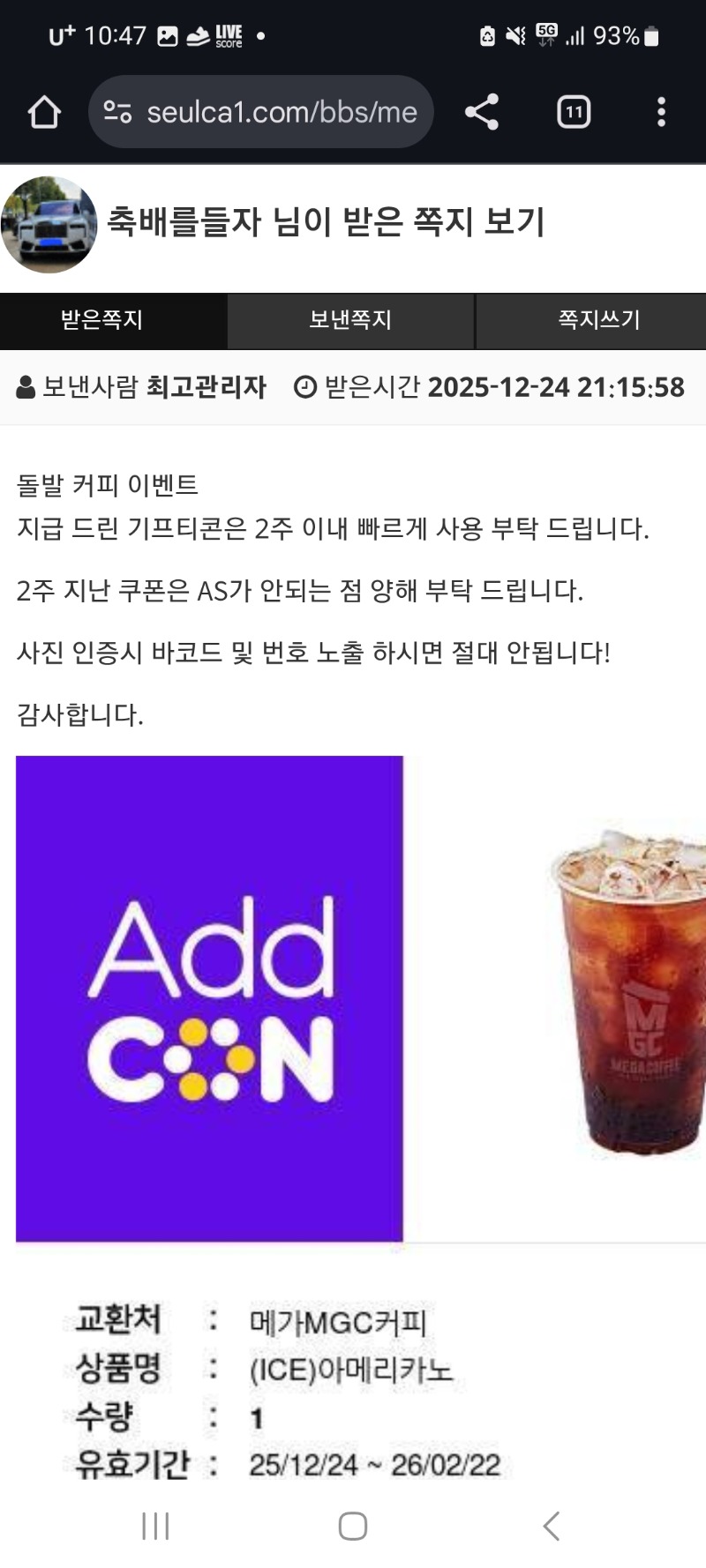 커피 감사합니다 축배를들자 1 0 0 00:28:38 *기프티콘 바코드 노출 주의* <- 감사합니다 0 0 https://seulca1.com/bbs/board.php?bo_table=free&wr_id=3414630 Author 1 0 Lv.9 축배를들자 9 7,137,254 (78%) 축배를들자님 보유 포인트 : P 1,724,162 +3 12.25 건담 600×777 +4 12.25 플에 팔모가지 건다 플ㅅㅅㅅ +4 12.25 가자 뱅커ㅅㅅㅅ +1 12.25 커피 감사합니다 12.25 출첵