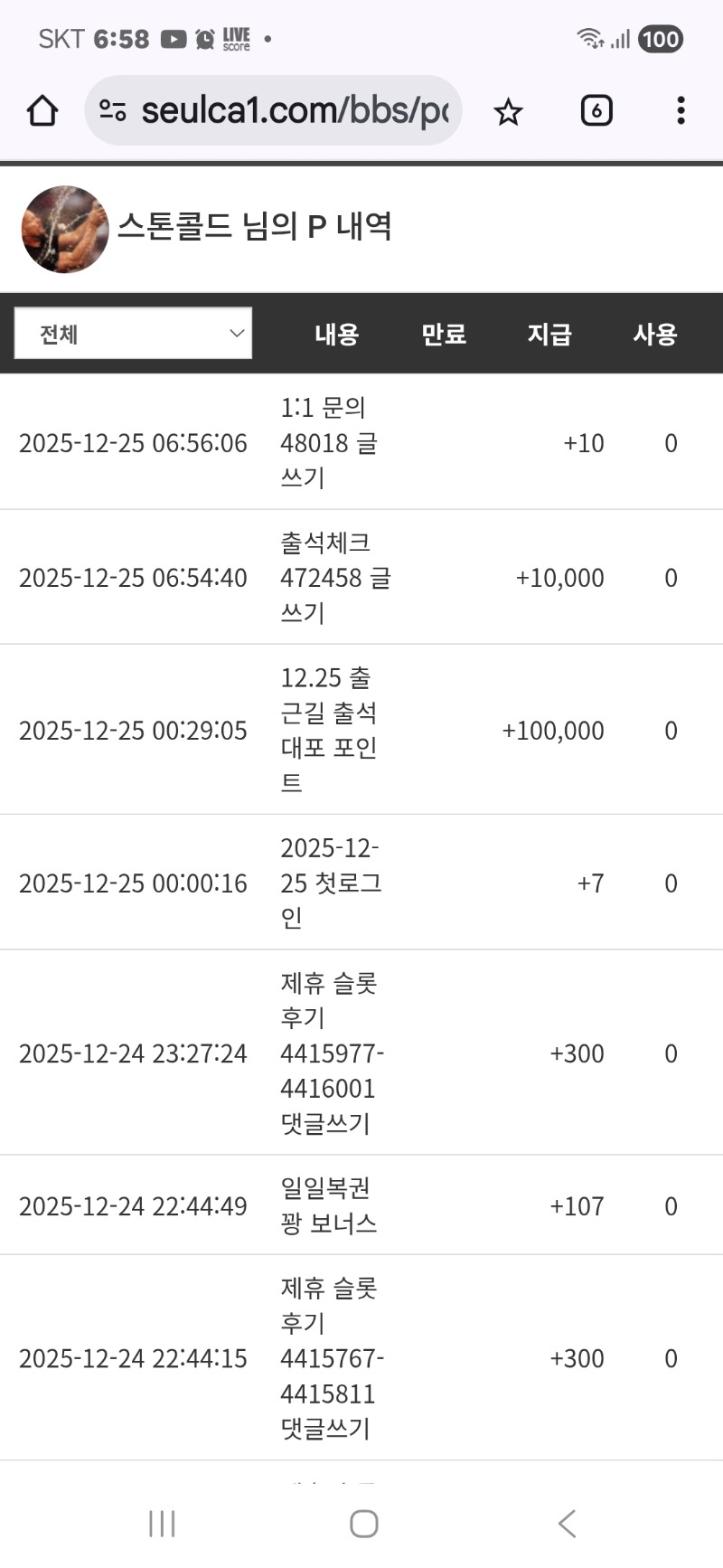 출근길포인트 스톤콜드 0 0 0 06:59:53 *기프티콘 바코드 노출 주의* <- 크리스마스선물이네요 감솨 0 0 https://seulca1.com/bbs/board.php?bo_table=free&wr_id=3414955 Author 3 1 Lv.10 스톤콜드 10 9,729,205 (86%) 스톤콜드님 보유 포인트 : P 912,575 +1 12.25 오늘하루도 12.25 출근길포인트 12.24 이번주 저번주 쌍복 이번에는과연 +36 12.22 닭집196배 +1 12.21 [비밀글] 포교
