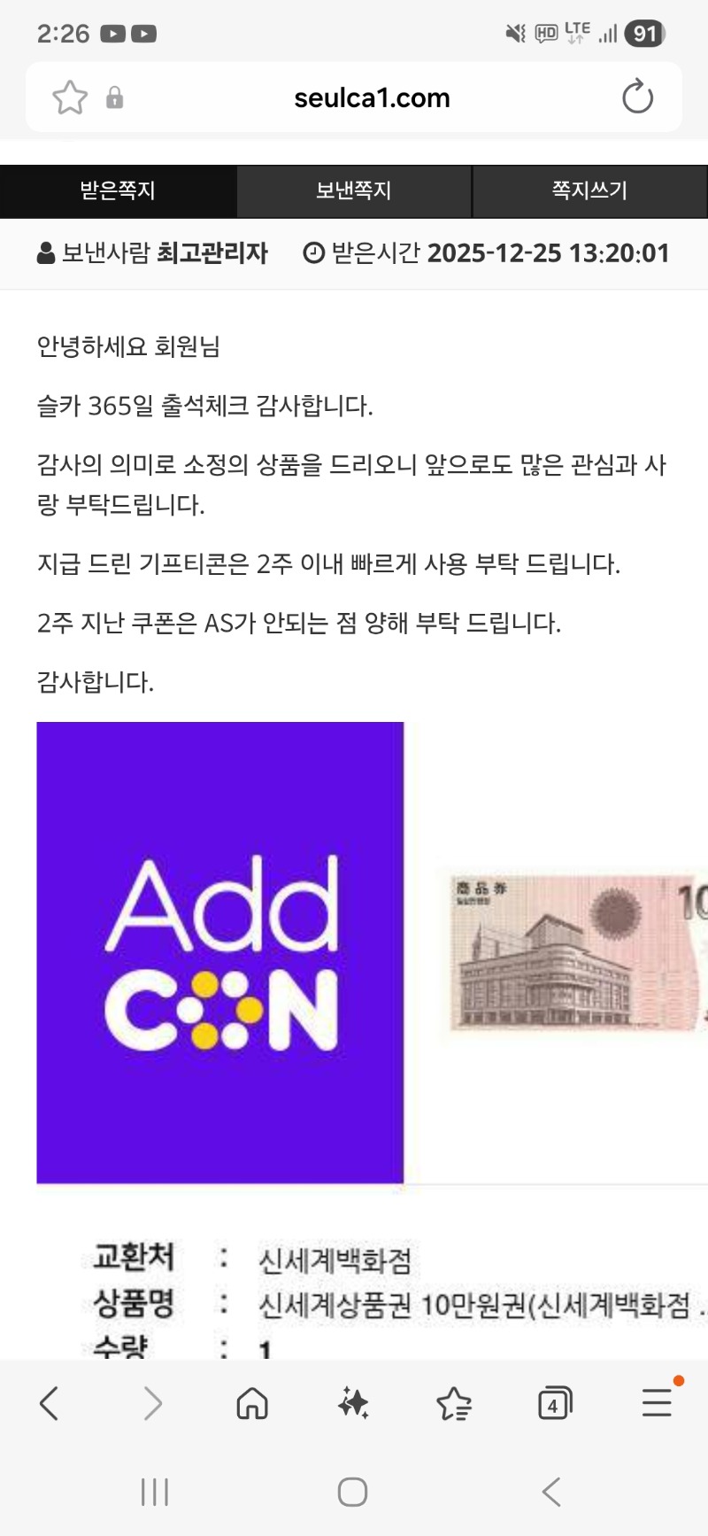 1주년 기념 선물 감사합니다^^ 슬롯하고싶다 31 3 0 14:30:01 *기프티콘 바코드 노출 주의* <- 시간 참 빨리가요 이용하다가 접을라고탈퇴한다음 다시 가입하고처음부터 다시 시작했는데 벌써 1주년이라니 방송보고 놀터 이용하니깐 재밌고시간도잘가내요^^ 항상 회원들 챙겨주시는 최고관리자님 비제이들 놀이터 실장님 감사합니다 2주년도 도전하겠습니다^^ 3 0 https://seulca1.com/bbs/board.php?bo_table=free&wr_id=3415700 Author 5 1 Lv.16 슬롯하고싶다 16 50,907,154 (4%) 슬롯하고싶다님 보유 포인트 : P 0 +31 12.25 1주년 기념 선물 감사합니다^^ 12.25 오배....슈퍼구매로는 안된다고 전에그러셨는데 +8 12.25 365일 드디어 출석했습니다 1주년^^ 12.24 470만포....순삭당했내ㅠ +4 12.24 로또는 그냥 8만가