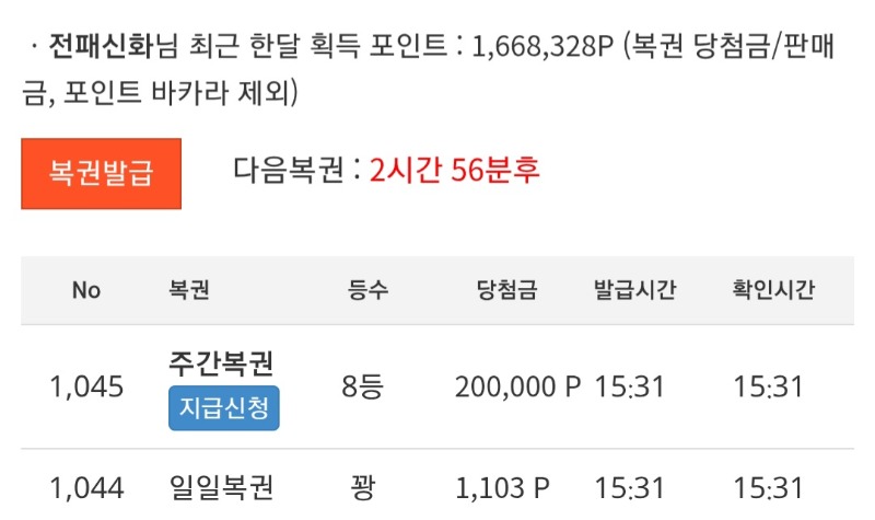 주복 8등 오래간만에 당첨!! 전패신화 3 0 0 15:38:15 *기프티콘 바코드 노출 주의* <- 0 0 https://seulca1.com/bbs/board.php?bo_table=free&wr_id=3415936 Author 0 1 Lv.13 전패신화 13 18,123,187 (2%) 전패신화님 보유 포인트 : P 3,004,465 +3 12.25 주복 8등 오래간만에 당첨!! +1 12.25 맛점 하세요 ~ +16 12.25 문 라용호 소액 이김 +14 12.25 문 라용호 소액 승 +14 12.25 문 용호 소액 이김